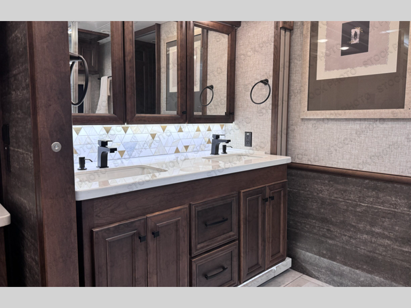Fours slides, a bath and a half, plus sleeping space for six make this coach family friendly. There are two sofa beds in the main living area, plus a lift TV for your favorite shows. The chef of your group can cook meals on the two burner induction cooktop or in the stainless steel convection microwave with an air fryer, and there is a drawer-type dishwasher that will make clean up easier than ever. This model also includes a residential refrigerator plus pull-out storage and a stack of drawers for snacks galore. Enjoy a great night's rest on the king bed after traveling all day, and the full rear bath will allow you to clean up in luxury. There is even a floor-to-ceiling closet for maximum storage and a stacked washer and dryer; how convenient!