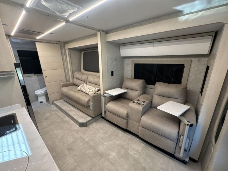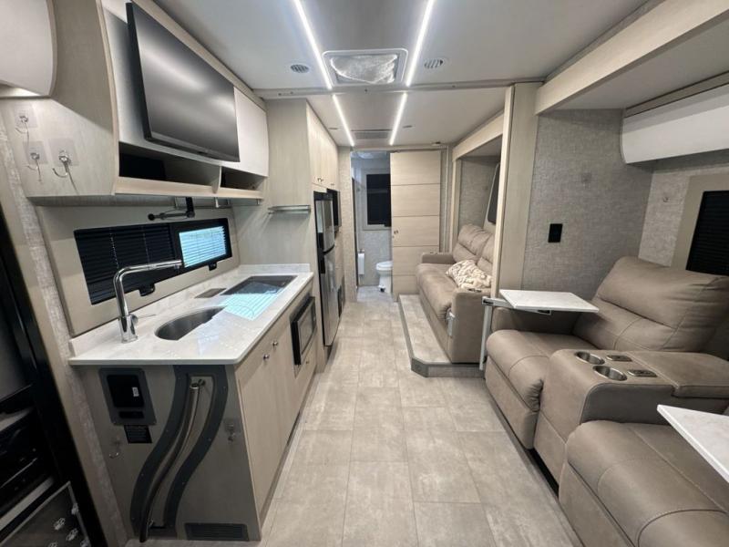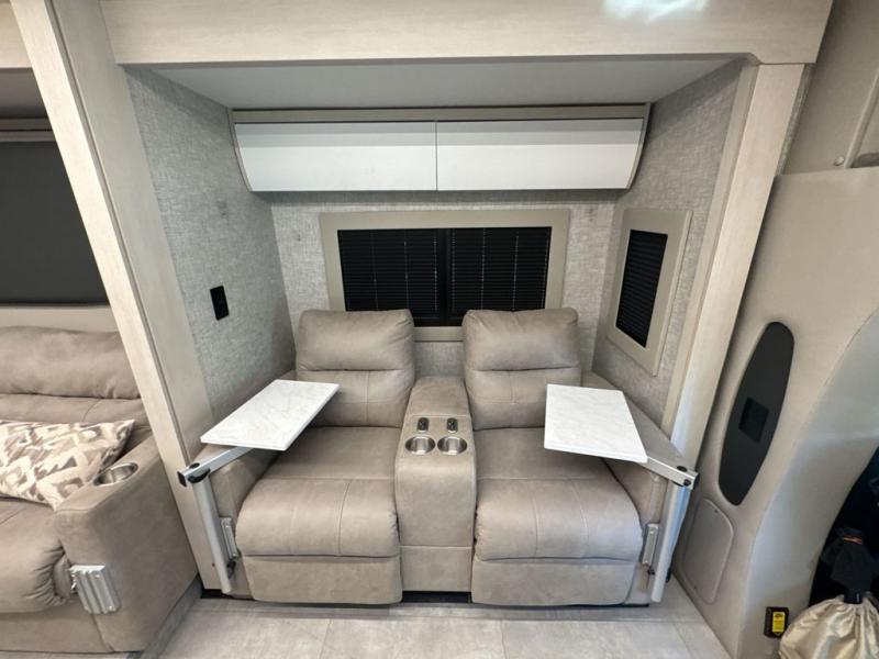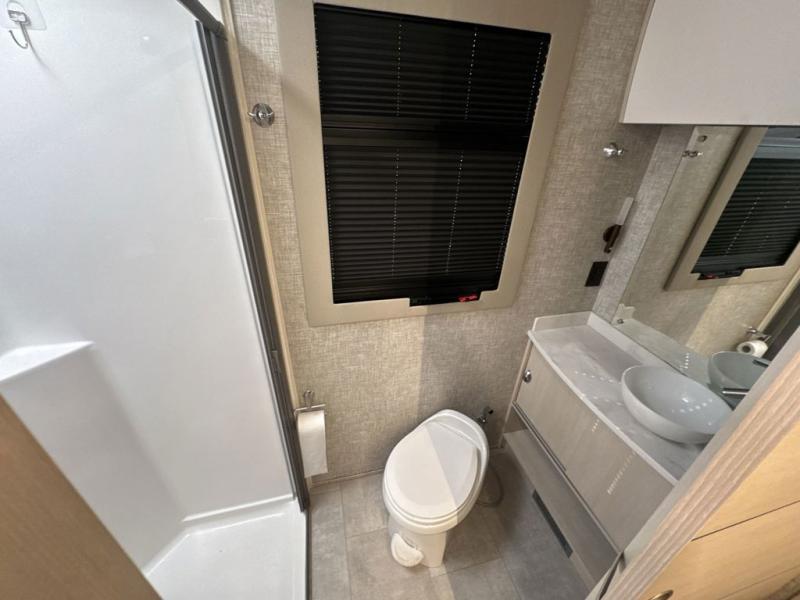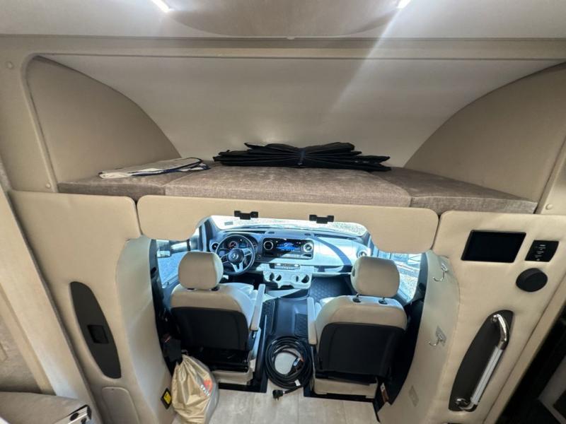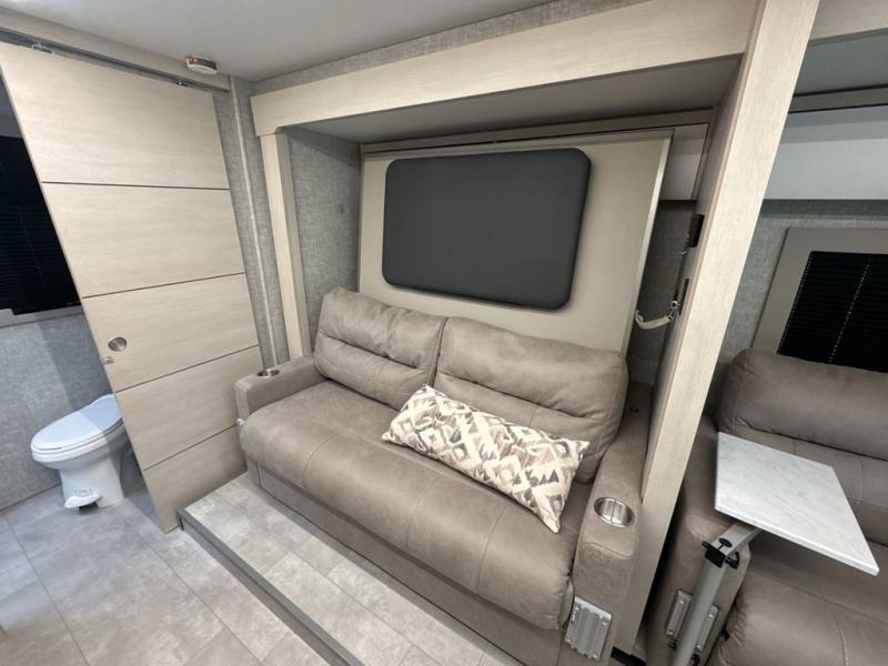 With any Wayfarer Class C diesel coach by Tiffin Motorhomes you will enjoy luxury features both inside and out. There are one-piece molded gel-coat fiberglass front and rear caps plus full-body paint and two layers of clear coat for added protection. The Mercedes-Benz 3500XD dual wheel cutaway chassis provides a strong foundation, and the 2.0L V4 turbo diesel high output 208 HP diesel engine with 332 lb-ft torque will keep you going adventure after adventure! You will love the drive just as much as the destination with adjustable captain's seats that are also heated, intelligent navigation, and a Mercedes-Benz MBUX multimedia system with a 10.25" touchscreen. Wherever you decide to roam, you will be met with interior comforts that include high pressure laminate cabinets, solar and privacy shades, solid surface galley countertops and task lighting, and a wardrobe in the bedroom to keep your space tidy.