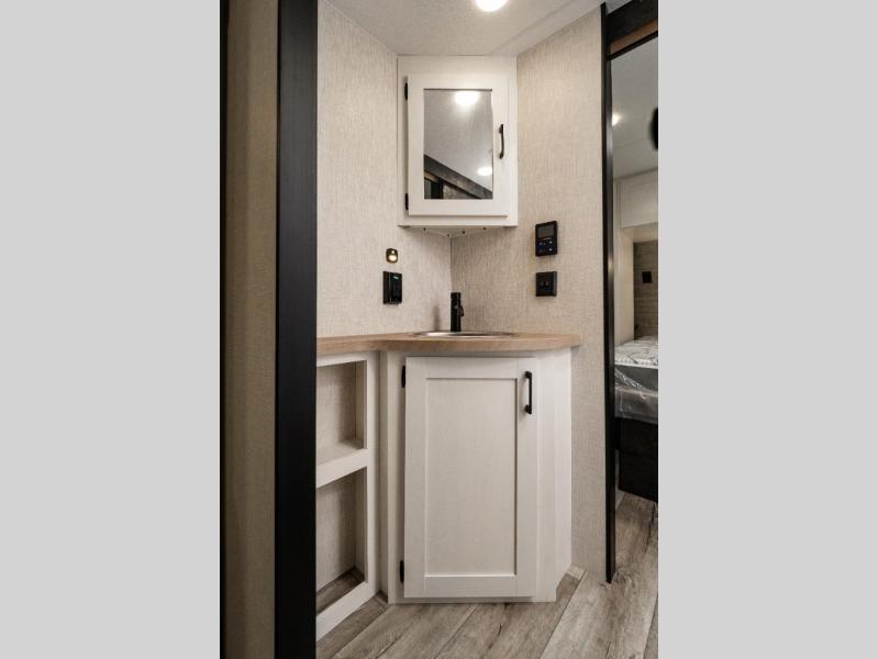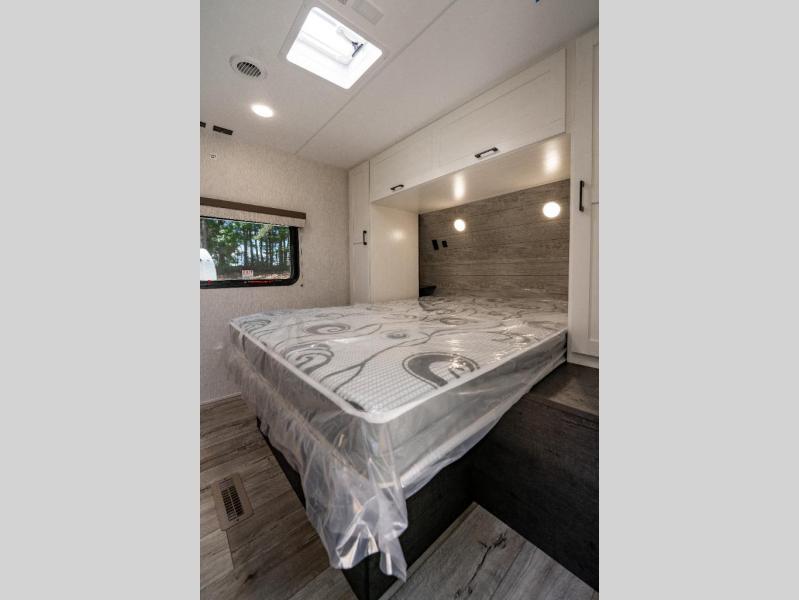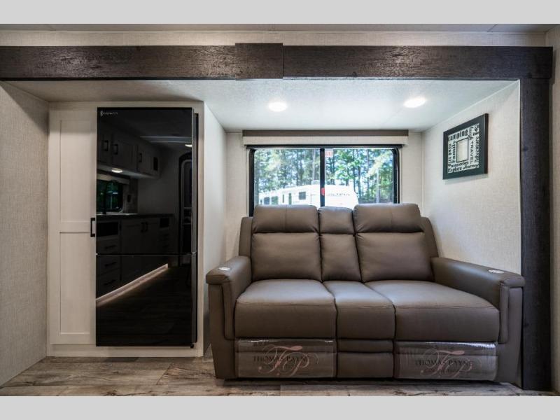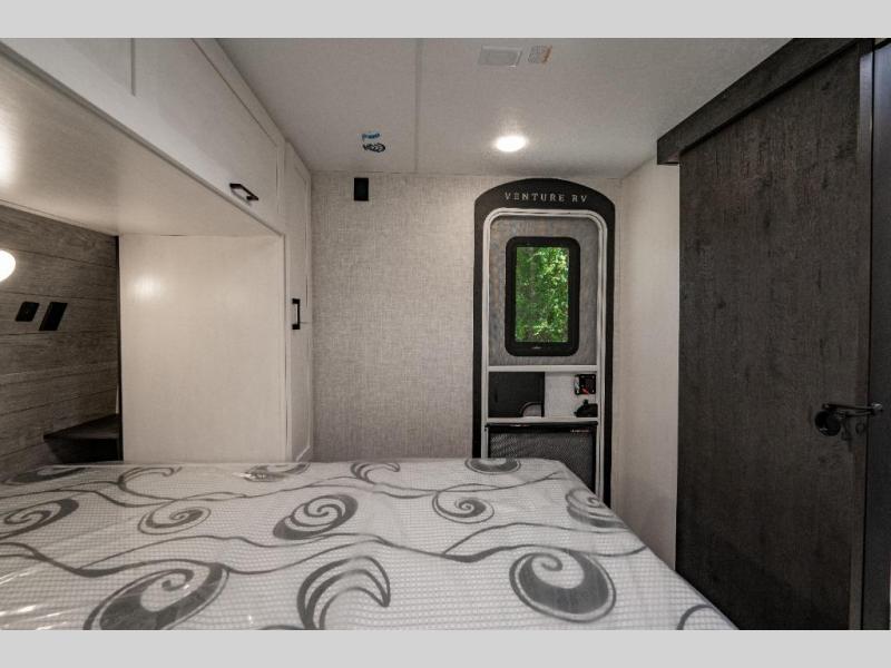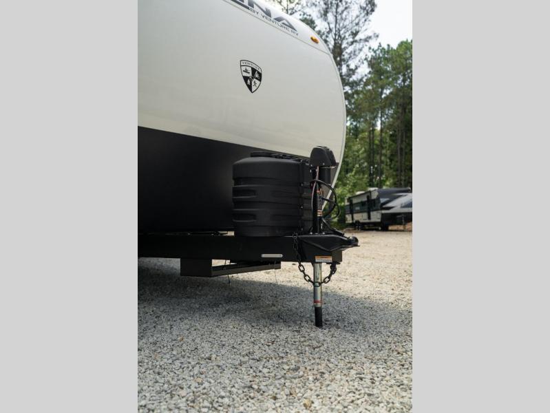 With any Sienna travel trailer by Venture RV, you will enjoy a lightweight unit, convenient amenities, and a durable construction that includes a BAL NXG-bolted frame. There is also a heated and enclosed one-piece underbelly, residential fiberglass insulation, and a reflective PVC roof membrane within the Weather-Shield Package to help extend your camping season. Outside, the BAL 5.0 power stabilizer jacks and power tongue jack will have you set up in no-time, and the Venture RV bottle opener/dog tie down will make it easy to bring your furry friends along. Head inside to enjoy the modern farmhouse design, along with Beauflor throughout with no carpet, custom backsplash, large underbed storage, and a bath skylight to name a few comforts!