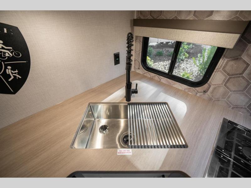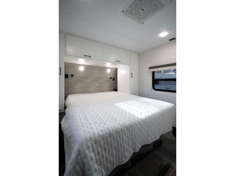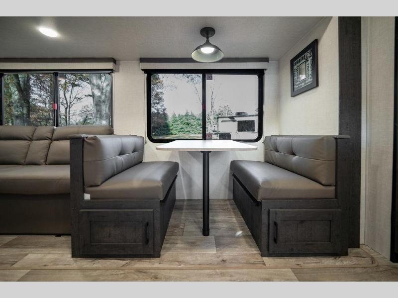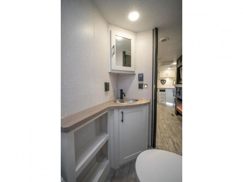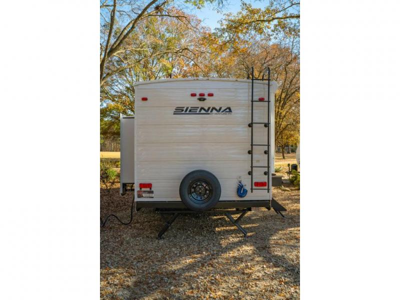 With any Sienna travel trailer by Venture RV, you will enjoy a lightweight unit, convenient amenities, and a durable construction that includes a BAL NXG-bolted frame. There is also a heated and enclosed one-piece underbelly, residential fiberglass insulation, and a reflective PVC roof membrane within the Weather-Shield Package to help extend your camping season. Outside, the BAL 5.0 power stabilizer jacks and power tongue jack will have you set up in no-time, and the Venture RV bottle opener/dog tie down will make it easy to bring your furry friends along. Head inside to enjoy the modern farmhouse design, along with Beauflor throughout with no carpet, custom backsplash, large underbed storage, and a bath skylight to name a few comforts!