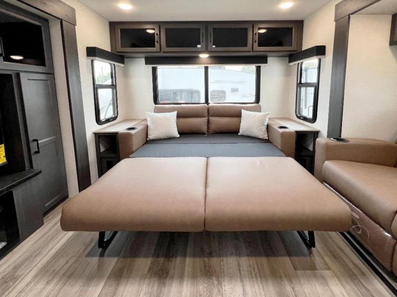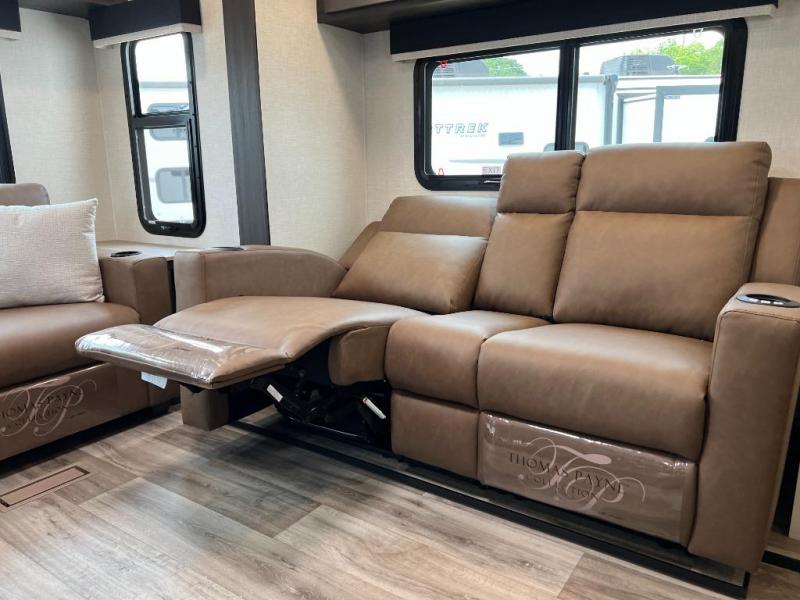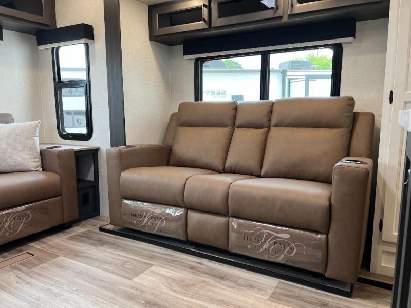 The 2025 Venture RV SportTrek Touring Edition STT343VIK blends luxury and versatility with its triple-slide design, island kitchen, theater seating, king bed, and high-end finishes—built for travelers who demand comfort and class on the road.
