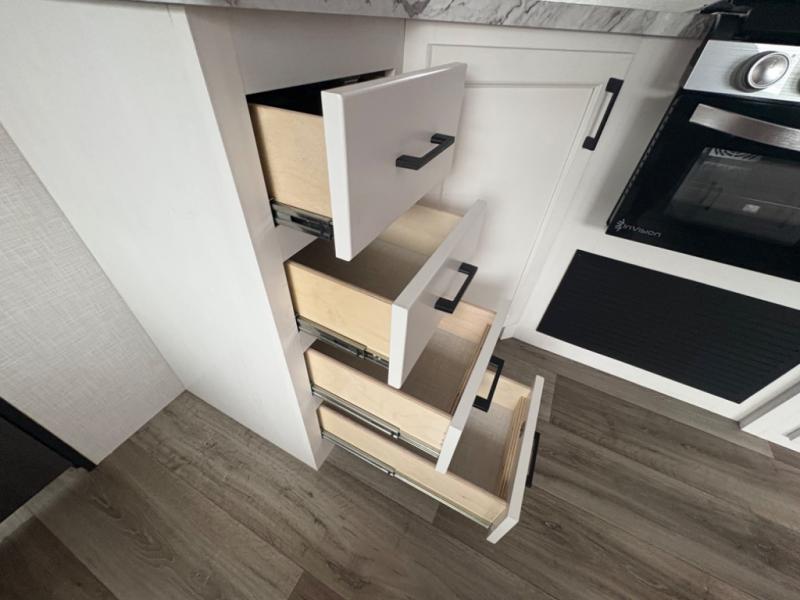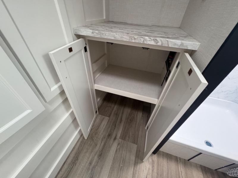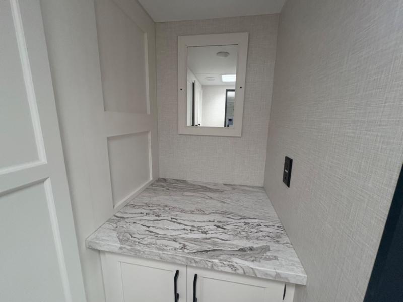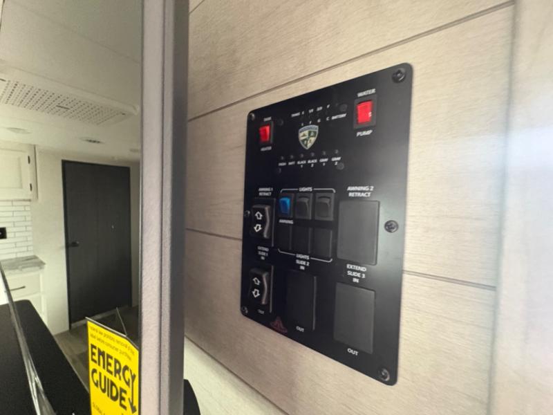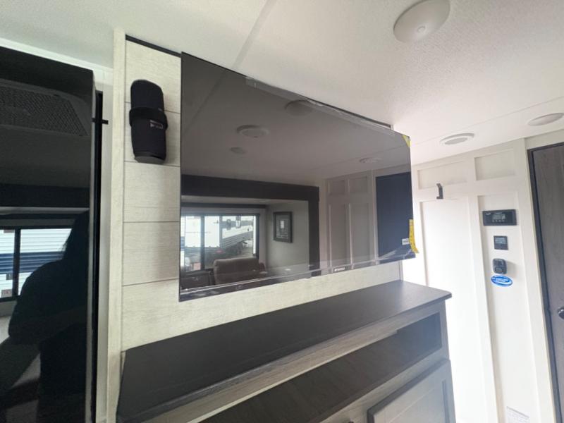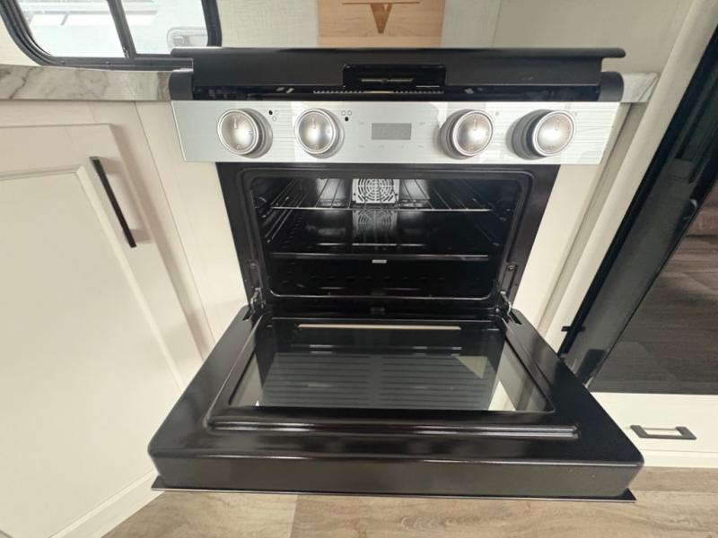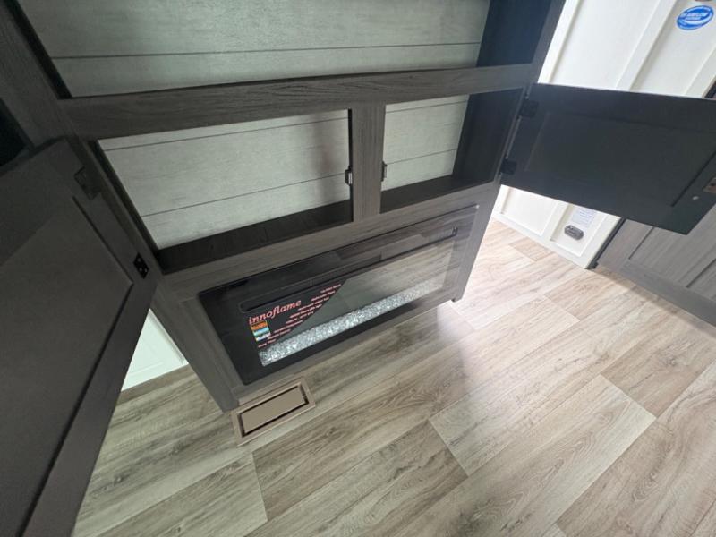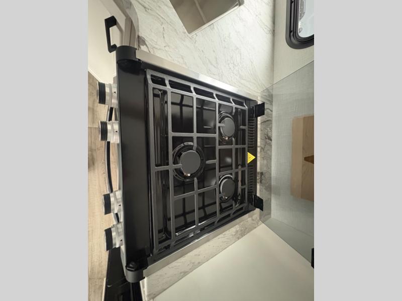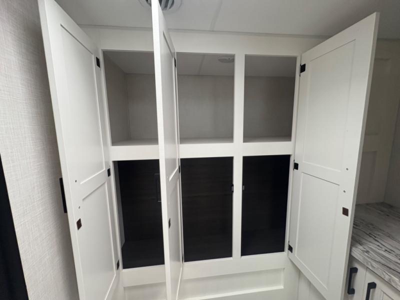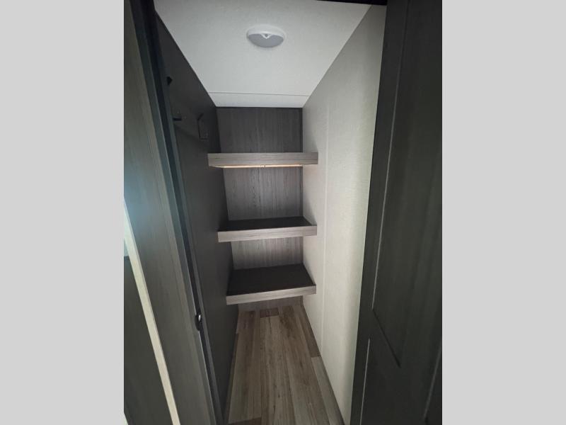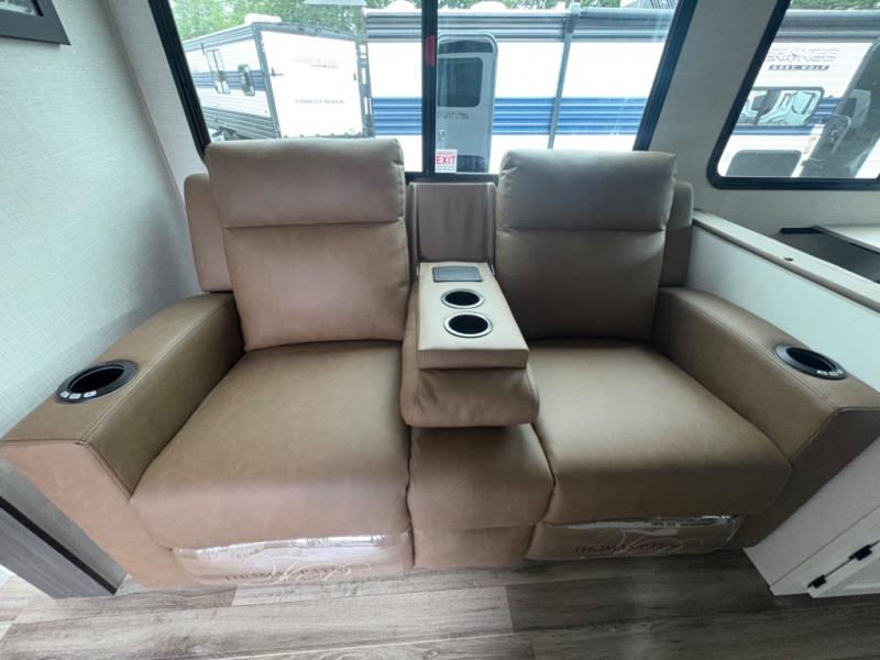 You're going to feel right at home in this Stratus single slide unit! There is not only a fully equipped kitchen with a three burner cooktop, but also an outside campfire café with a griddle, refrigerator, sink, and even an exterior 40" TV for your entertainment. As you enter the unit, you will notice to the right a walk-in pantry with coat hooks, and to the left is the full rear bathroom with a 30" x 36" shower, a three door linen closet, and a cabinet prepped to add an optional washer and dryer. If mother nature rains on your parade then relax inside on either the 70" sofa or the sit n' slide table dinette across from the entertainment center.