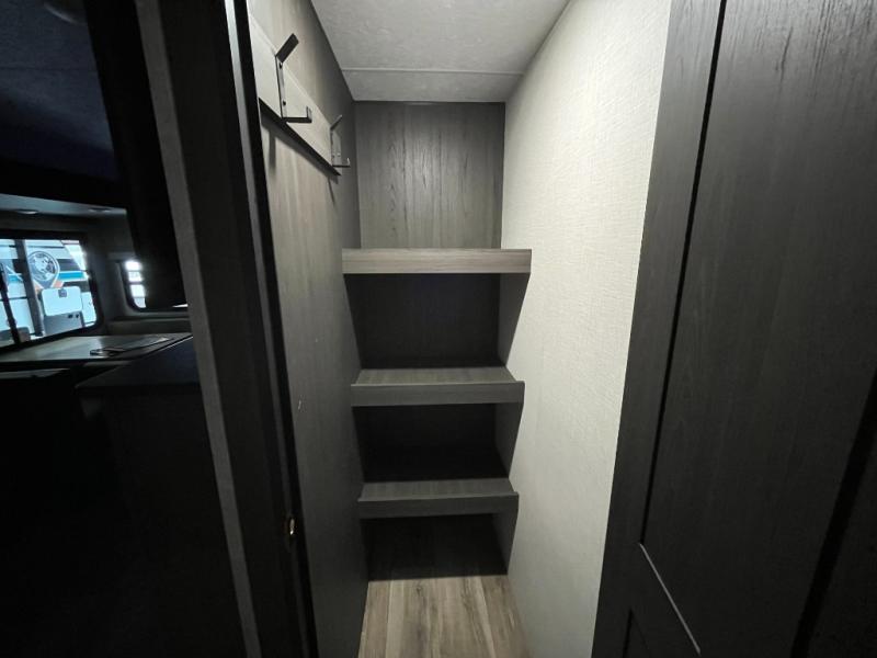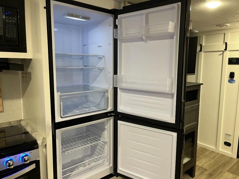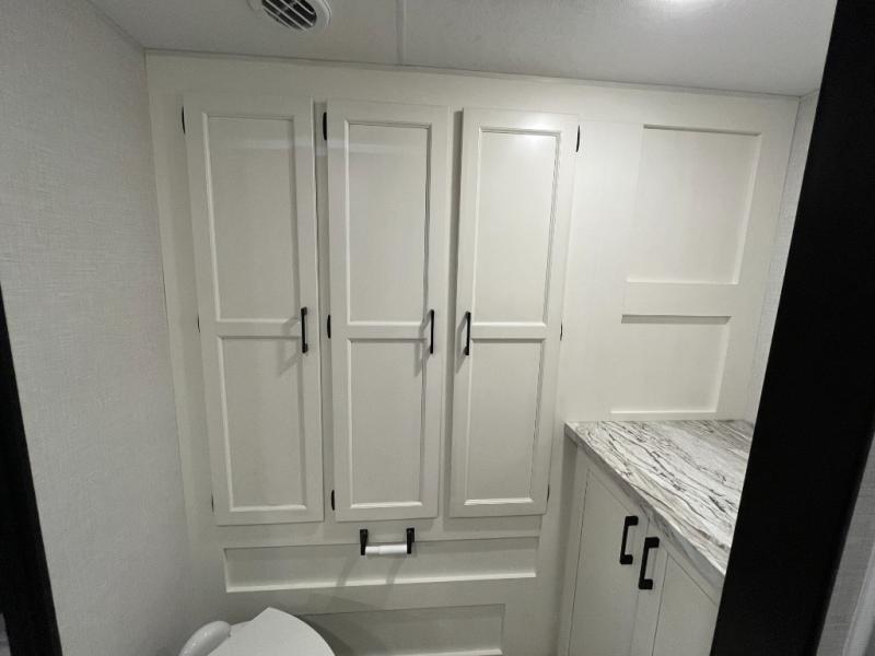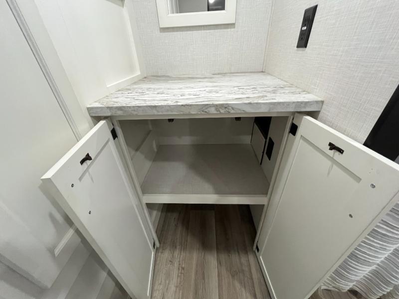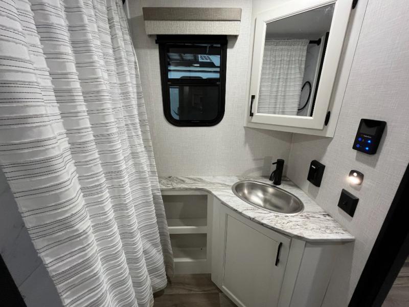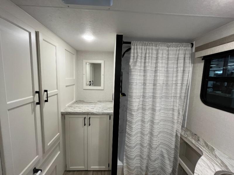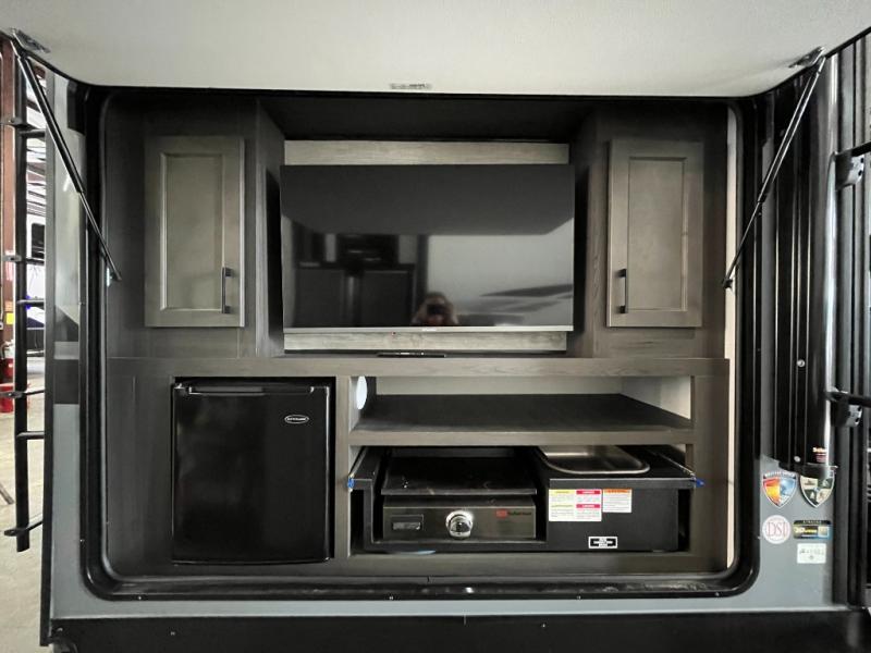 With a length of about 31 feet 11 inches, a dry weight around 6,720 pounds, and sleeping space for several travelers, the SR261VRB balances roomy comfort with manageable towing for many trucks and SUVs. Outside, the power awning creates a shaded outdoor living area perfect for morning coffee, evening cookouts, or relaxing with friends and family.