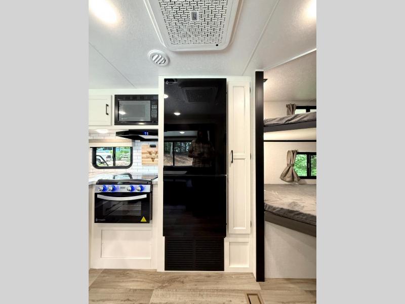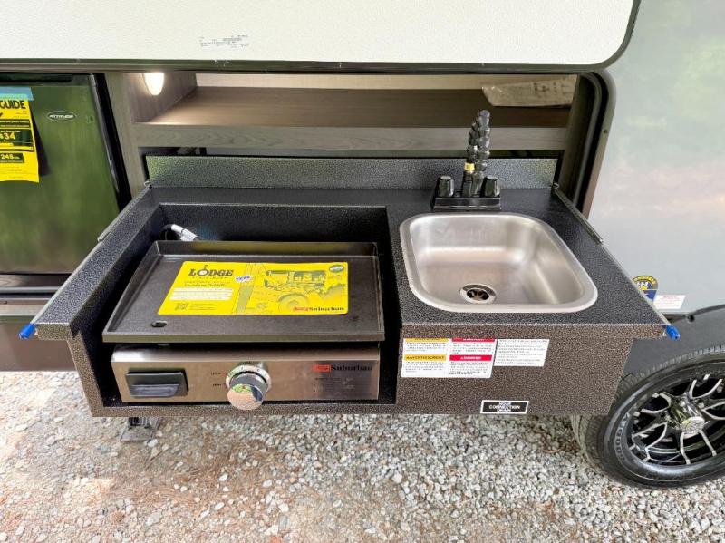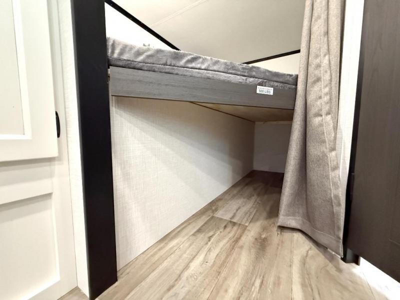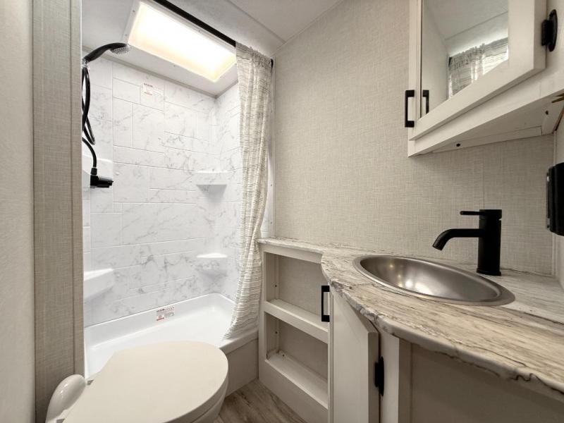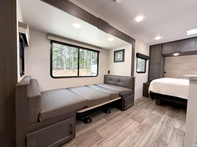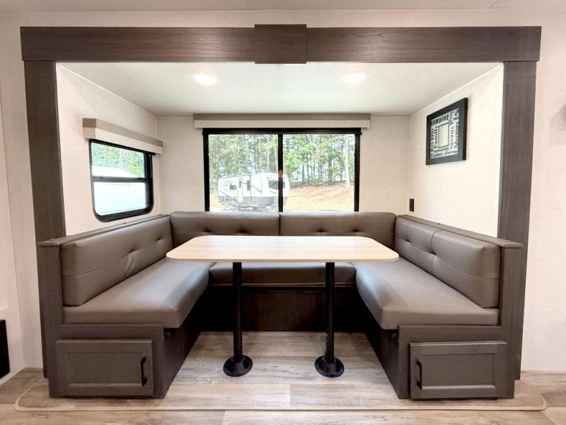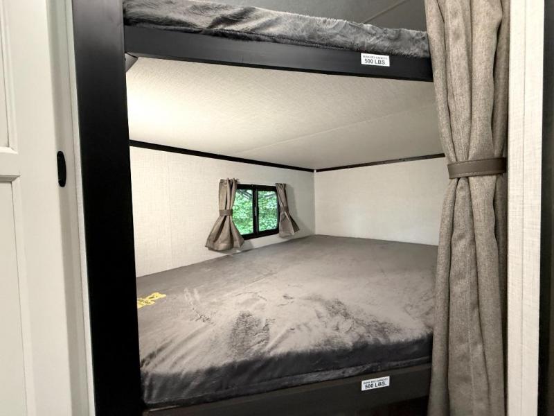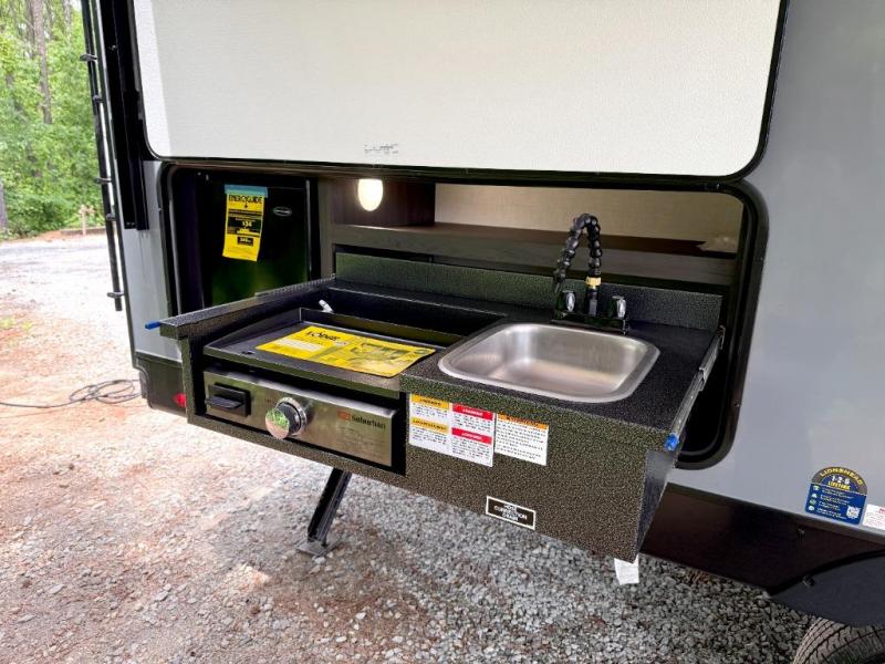 Sleep tight with your family on the road! This travel trailer is special for the whole family since it has plenty of space for sleep. First we have the 60" x 80" queen bed, the 51" x 75" double size bunk bed, and you can also sleep two people on the 88" x 48" U shaped dinette. Cook delicious dinner in the incredible kitchen. The L-shape counter includes stainless steel sink with cover and dish drying racks, three cooktop burner, refrigerator, pantry and an overhead cabinet. However, you can also have an amazing cooking time outside thanks to the outdoor kitchen, ideal to share a meal with your family while enjoying nature and its surroundings. Store your belongings in the dual wardrobes beside the bed and also in the pass thru storage. Finally, take a relaxing bath in the full bathroom furnished with a 30" x 36" shower.