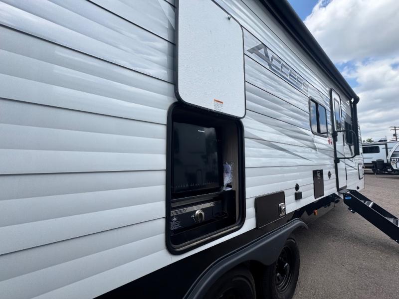 With any Winnebago Access travel trailer you will find thoughtful, clean, and contemporary designs filled with premium features that all have come to expect on any Winnebago towable. You will appreciate the stylish exterior aerodynamic front profile and durable sidewall metal for greater aerodynamics plus strength and durability. With a fully enclosed underbelly that comes with radiant foil insulation, you can easily extend your camping season into the colder months without worrying about having frozen pipes. On the inside, a foot flush toilet, roller shades, abundant storage, and spacious living areas making every camping trip more enjoyable. Make your choice today and Access your next adventure!