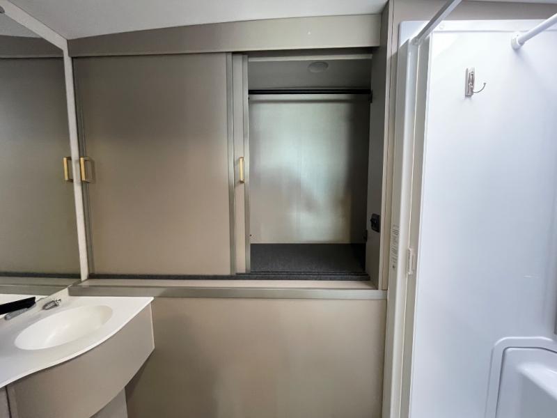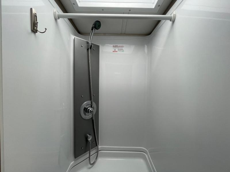 The perfect couples coach or for a family of three or four! You will be able to easily set up the queen Murphy+ bed when it's time for bedtime while the kids or your guests sleep on the 49" x 75" cabover bunk. You can also choose the optional low profile front cap with storage if you do not need the added sleeping space. An optional 3800W RVMP Flex Power generator is also available with this model. Everyone can get cleaned up in the full bathroom that has a space-saving sliding door and large wardrobe along the very rear that features a gear garage below. Create yummy meals and snacks using the kitchen appliances and the flip-up counter, then dine at the fold-down table with chairs, or eat seated on the theater seating with lap tables nearby on either side.