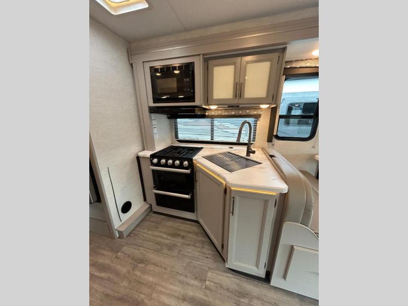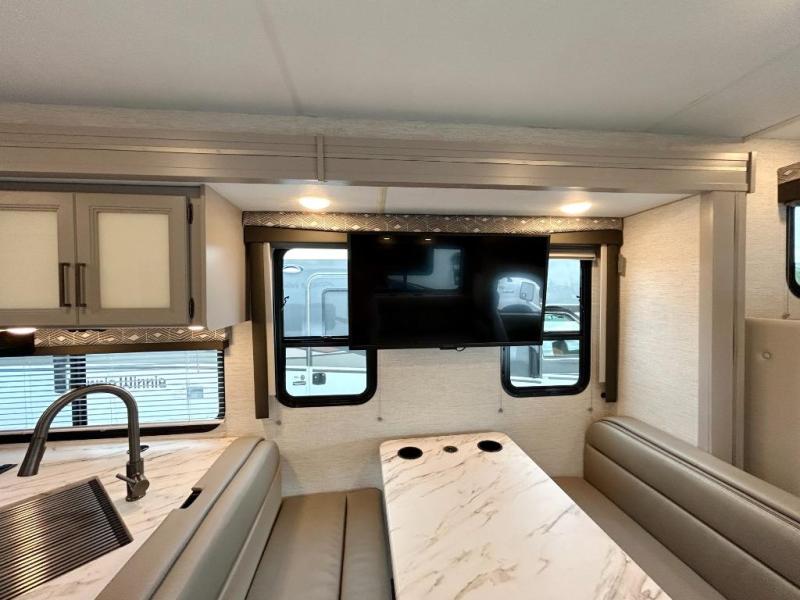 With any Four Winds Class C gas motorhome, you can travel in a trustworthy Ford E-Series chassis with 325HP. Each is built with welded sidewall cage construction and a welded tubular aluminum roof, a one-piece fiberglass cap, and includes a slick fiberglass exterior with graphics package for style and years of enjoyment on the open road. Inside, you will enjoy the well-equipped kitchen, the spacious bathroom, the sleeping accommodations and the Winegard ConnecT 2.0 WiFi/4G/TV antenna that allows you to stay connected. With several floorplans to choose from and options to add, you will surely find one that fits your family's needs or your friend's approval. Choose today!