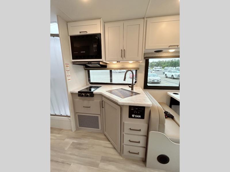 With any Four Winds Class C gas motorhome, you can travel in a trustworthy Ford E-Series chassis with 325HP, or a Chevrolet chassis with 401HP if you choose that option which is available on several models. Each is built with welded sidewall cage construction and a welded tubular aluminum roof, a one-piece fiberglass cap, and includes a slick fiberglass exterior with graphics package for style and years of enjoyment on the open road. Inside, you will enjoy the well-equipped kitchen, the spacious bathroom, the sleeping accommodations and the Winegard ConnecT 2.0 WiFi/4G/TV antenna that allows you to stay connected. With several floorplans to choose from and options to add, you will surely find one that fits your family's needs or your friend's approval. Choose today!