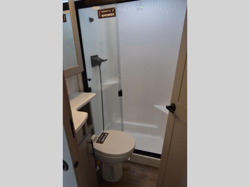 The whole family will have a fun time camping in this toy hauler! You can easily load up your toys into the 11' garage area with the 8' weather resistant ramp door and keep them filled with the dual 30-gallon fuel tanks. Once you unload your toys from the garage area, you can set up the opposing HappiJac sofas with a queen mattress above them, the loft that opens to the living room, and the half bathroom. The kitchen has everything you need to prepare your best meals including two hutches, three pantries, and a kitchen island with two bar stools to enjoy your morning coffee and eggs. The dual entry bathroom has a 48" x 30" shower and leads directly into the front private bedroom. Inside the bedroom is a king bed slide for more floor space, a flip top dresser, and a front wardrobe with washer and dryer prep!