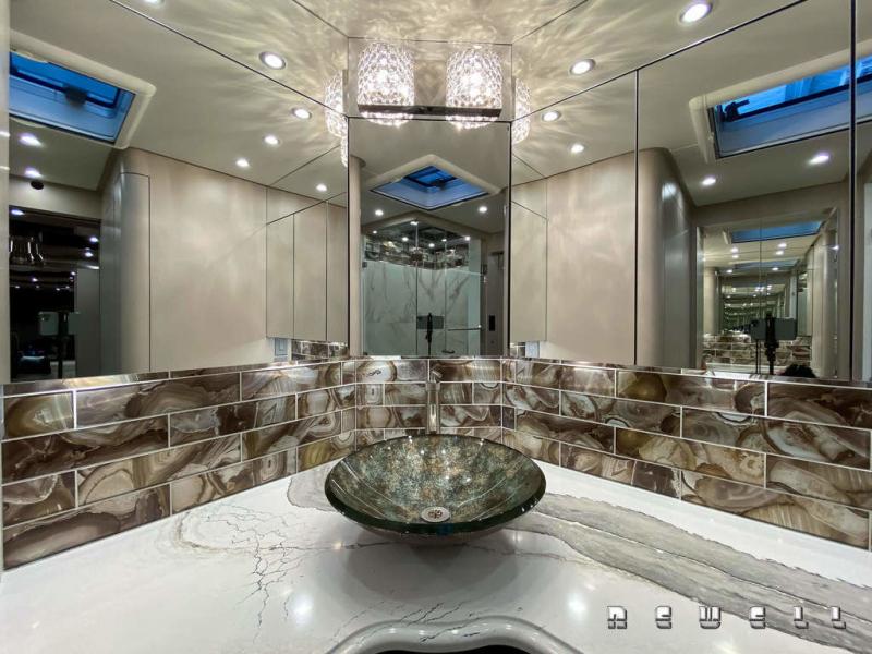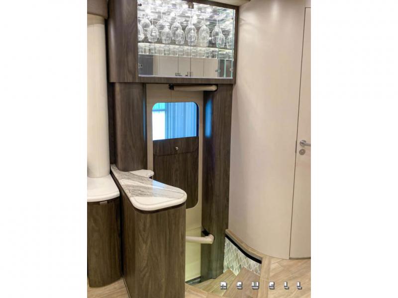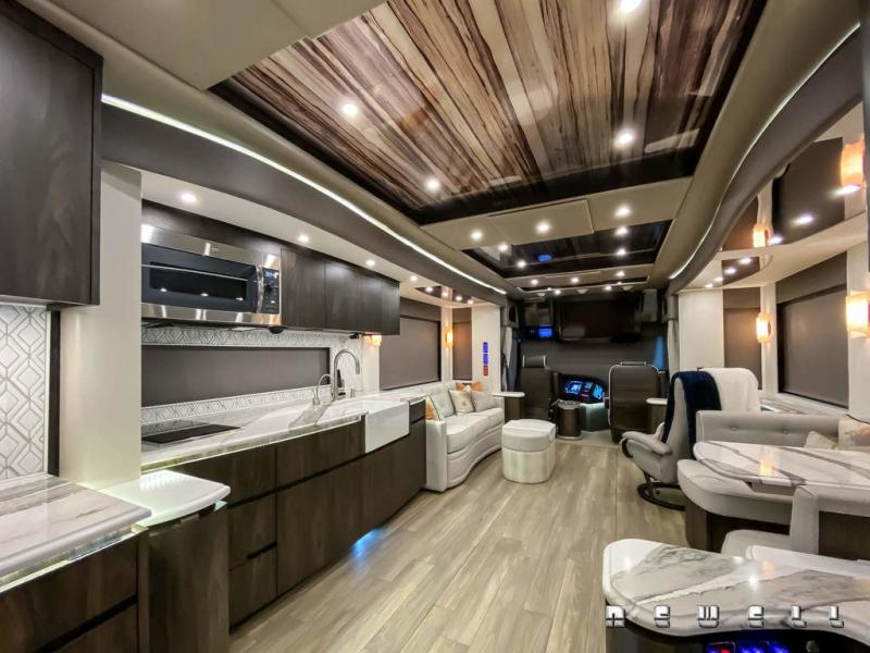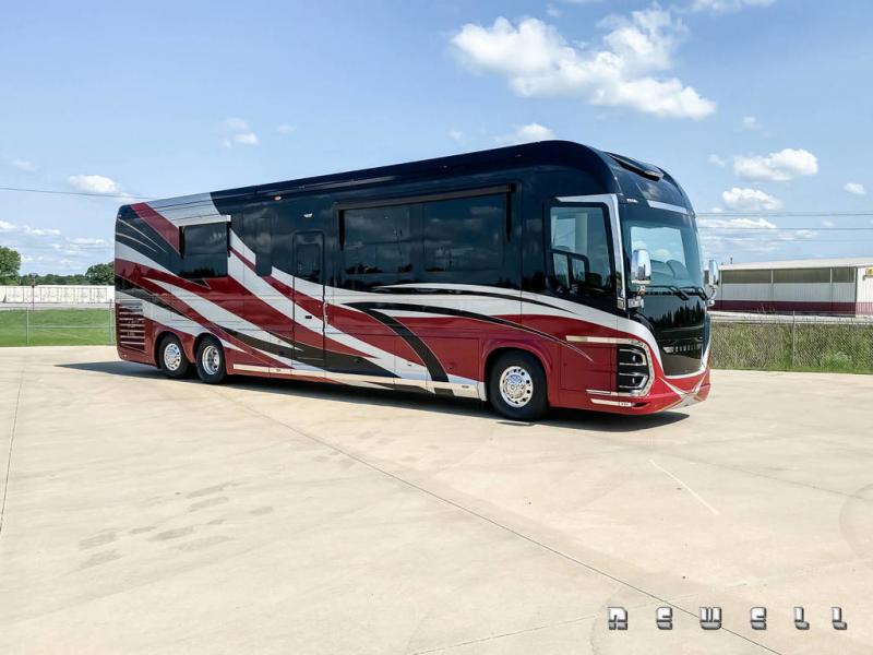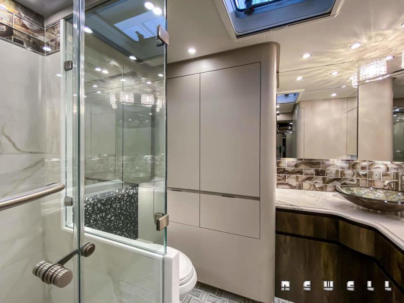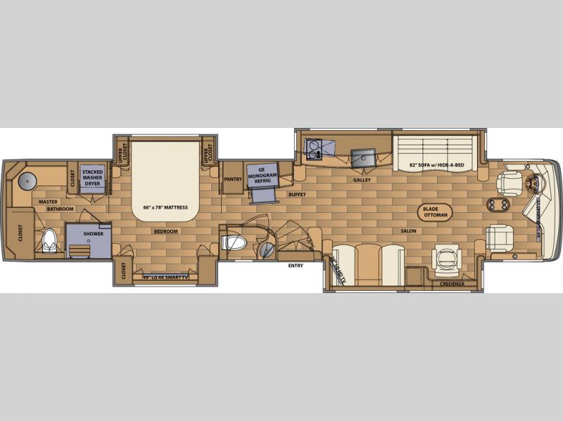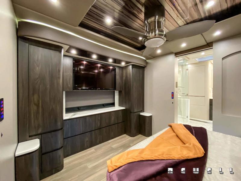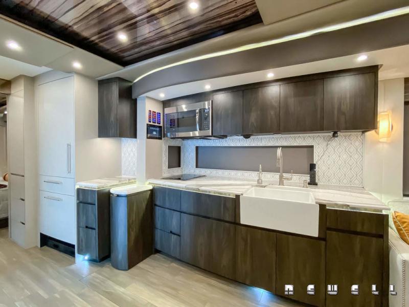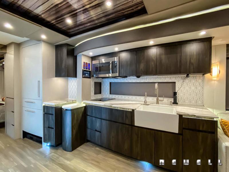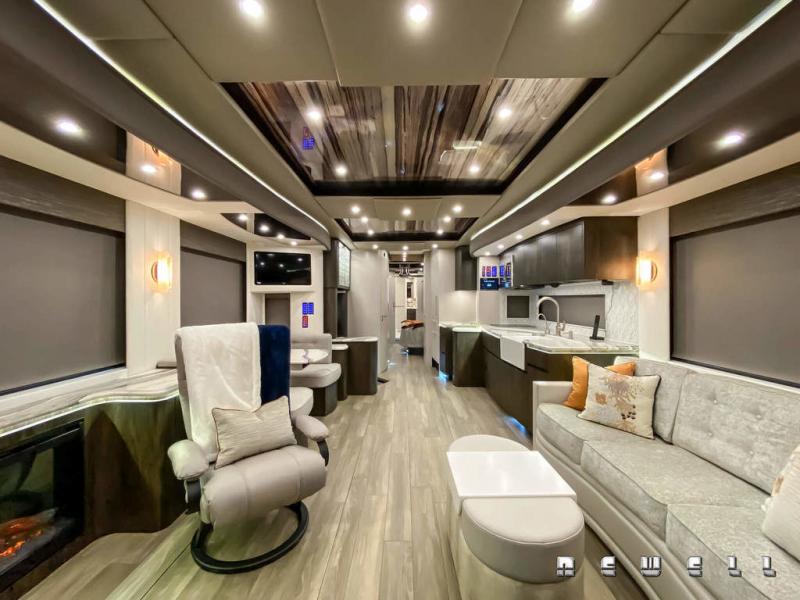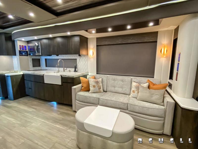 Come travel the state or country in this cozy coach! Once you arrive at your destination, the reclining/swivel pilot seats can become a part of the living area where your crew is relaxing on the sofa and two chairs with a table. You'll find an induction cooktop in the kitchen to prepare meals, plus a stainless steel double door refrigerator and a pantry to hold food for the whole week. A king bed slide out in the rear corner bedroom will have you feeling right at home, and there is a bedroom TV to watch movies in bed plus power outlets on both sides of the bed to charge your phone at night. Having a full bath onboard is sure to come in handy, especially with its glass shower door, skylight, and on-demand water heater. This model also includes two closets, one with washer and dryer prep to keep your clothes wrinkle-free plus more storage space throughout for camp gear and necessities!