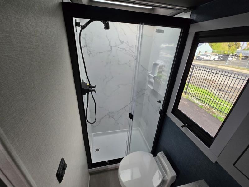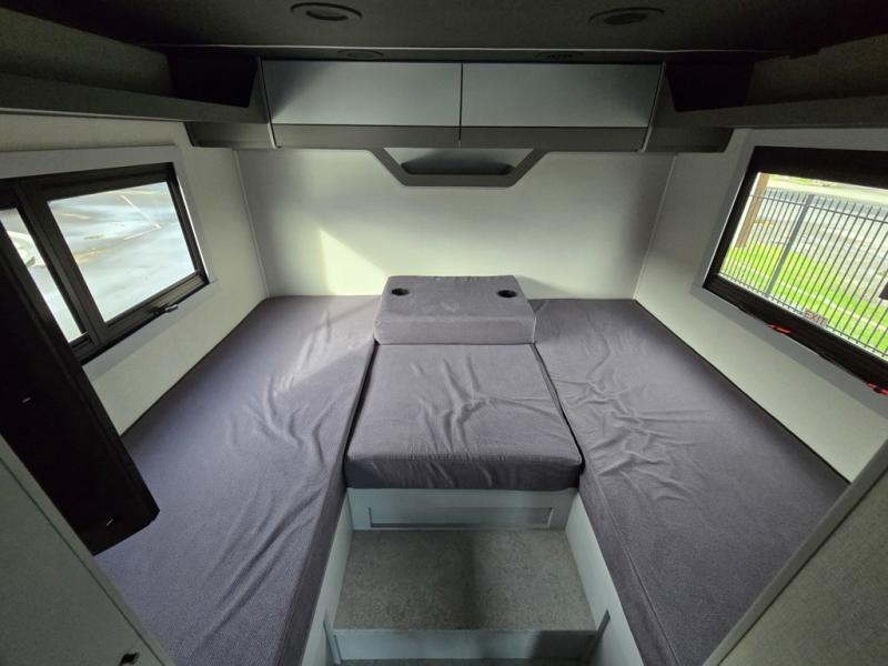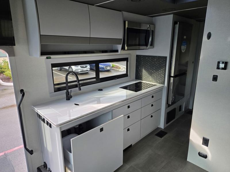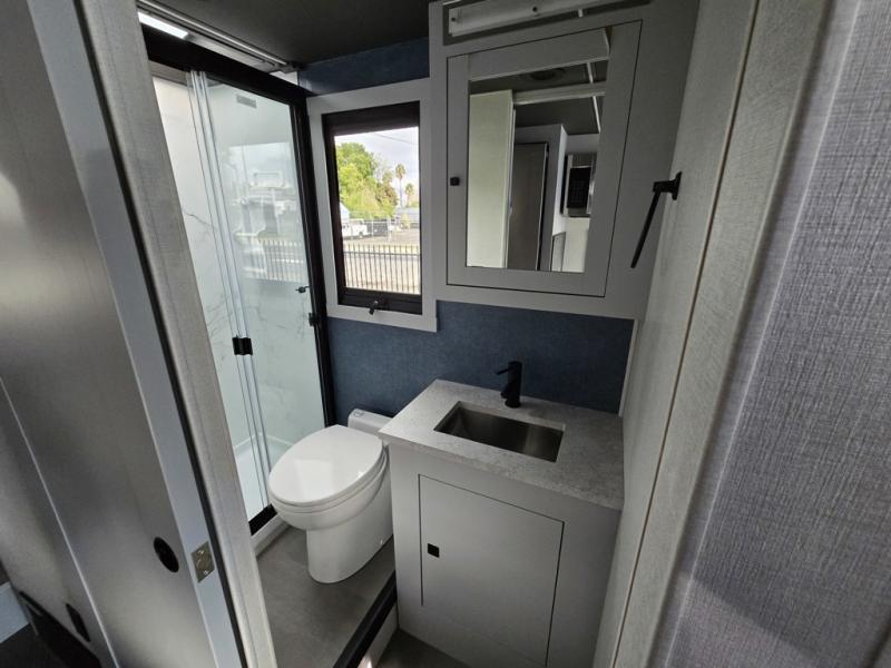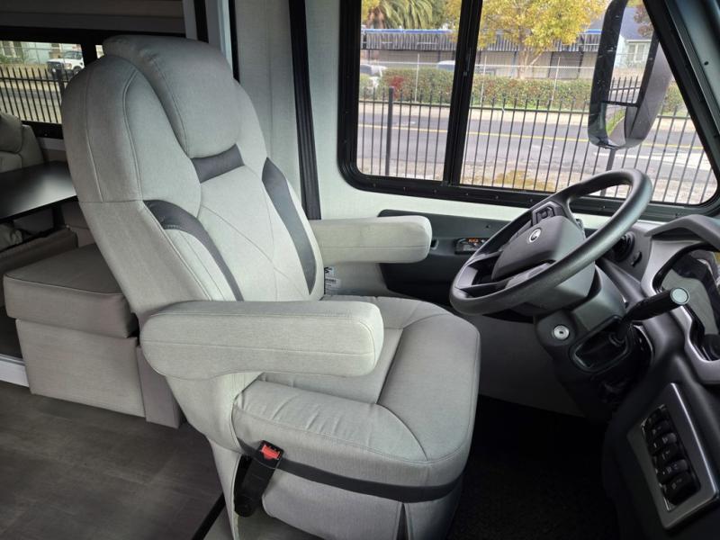 You're sure to have a great time in this sleek motorhome for two! Once you arrive at your destination, the reclining/swivel captain's seats can become a part of the living room where you'll also find a slide out with recliners/dinette. And if you're needing more sleeping space, just choose the optional sofa with a sleeper in place of the dinette! You can then make lunch on the induction cooktop and grab a cold drink from the stainless steel double door refrigerator. The full bath includes a glass shower door, an on-demand water heater, and a shower skylight to let natural light in. Head to the rear bedroom where you can get a great night's rest on the two twin beds with a nightstand in between to set your phone and book on. There is also a 32" bedroom TV so you can watch movies in bed!
