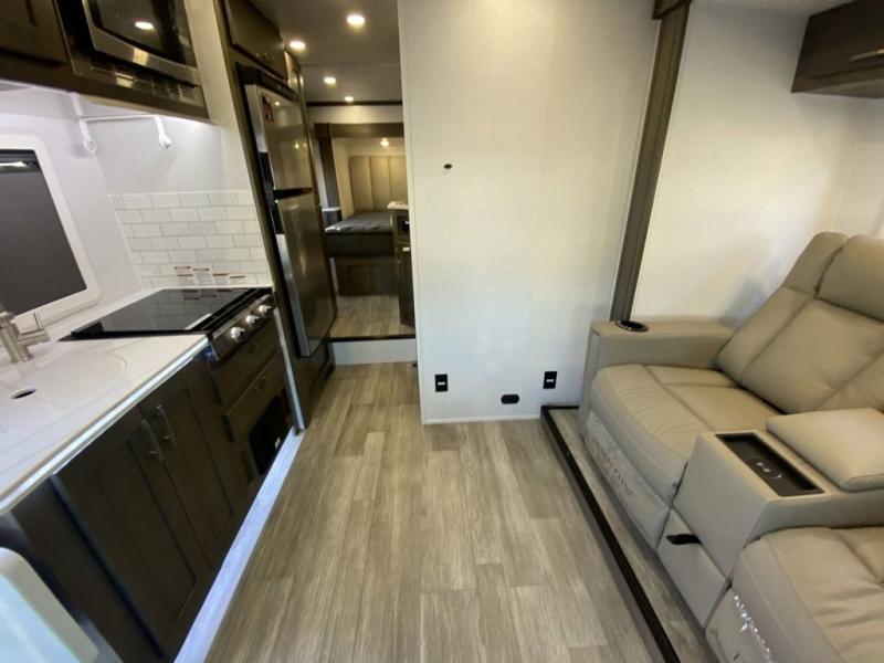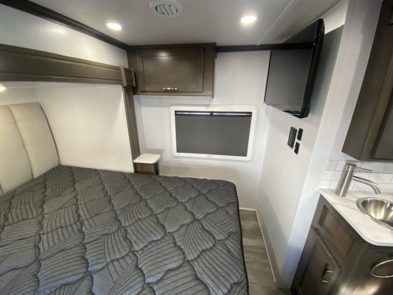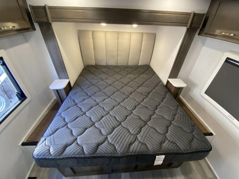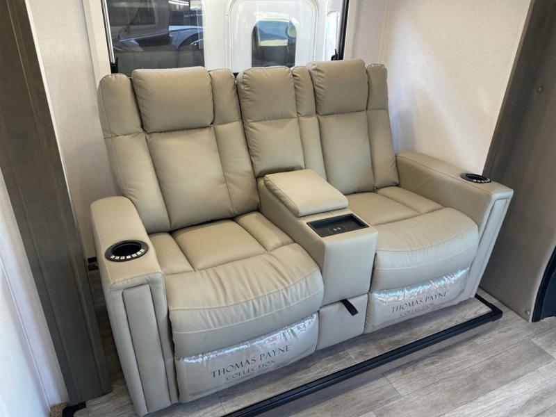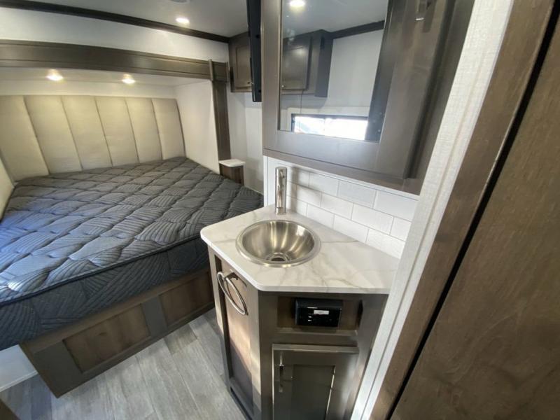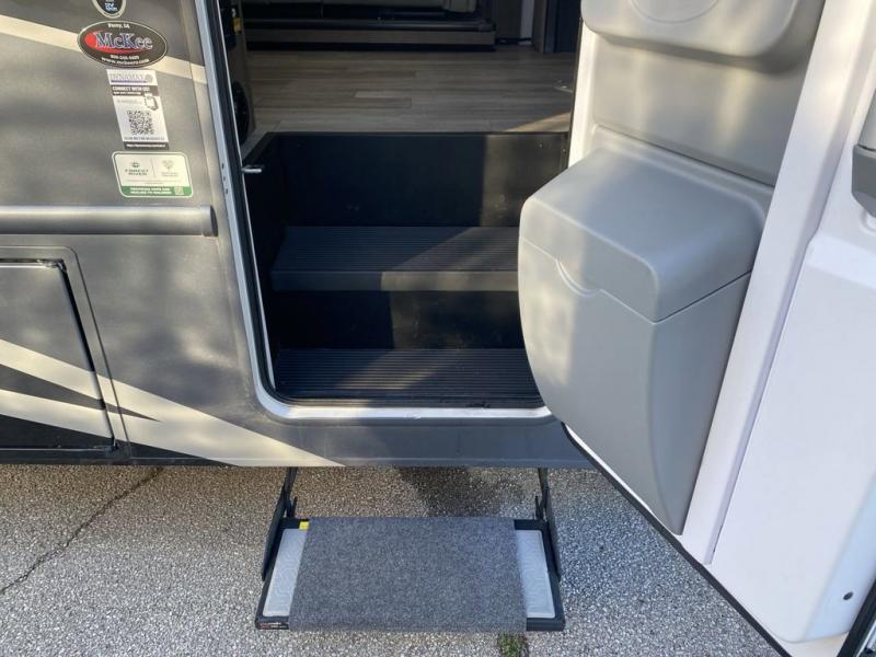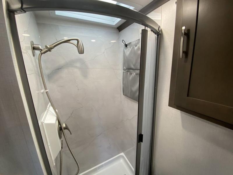 Enjoy a home away from home with this motorhome! The rear private bedroom has a queen bed slide for more interior space and privacy curtains to draw at night. If you need more sleeping space, just add the optional cab over bunk. The booth dinette slide is not only great for enjoying meals and play card games, but can also transform into an extra sleeping space. You could also switch it out for the optional theater seating to meet your specific needs. The bathroom has a shower with a skylight above for added natural lighting and an Oxygenics body spa RV shower head for a relaxing shower, and the vanity sink is just outside the bathroom so one person can get ready while another washes up. Store all of your outdoor gear in the exterior seamless rotocast storage compartment with LED lighting to see clearly at night too!