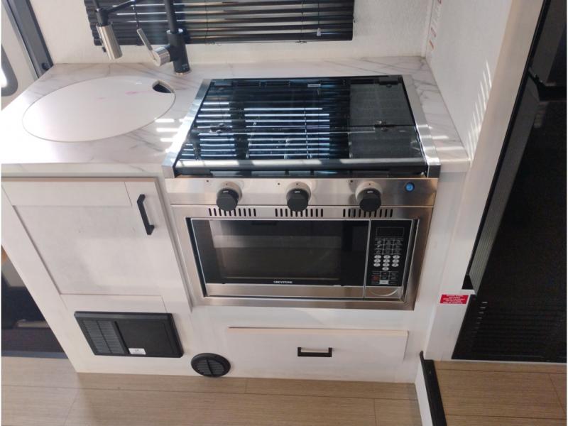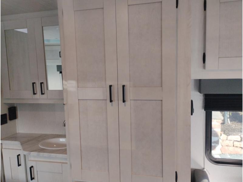 The journey will be oh-so enjoyable when you use this Entrada Class C gas motorhome to explore! You will be able to create meals each day you are on the road because the kitchen has everything you will need, like a convection microwave, a round sink, a cooktop, a flip-up countertop, and a 10.7-cubic foot refrigerator. There is even a pantry/wardrobe to store spices, chips, or canned goods. The rear of this unit includes the queen bed in one corner and the private bath in the other, and you can close the privacy curtain here to make a master bedroom for extra comfort!