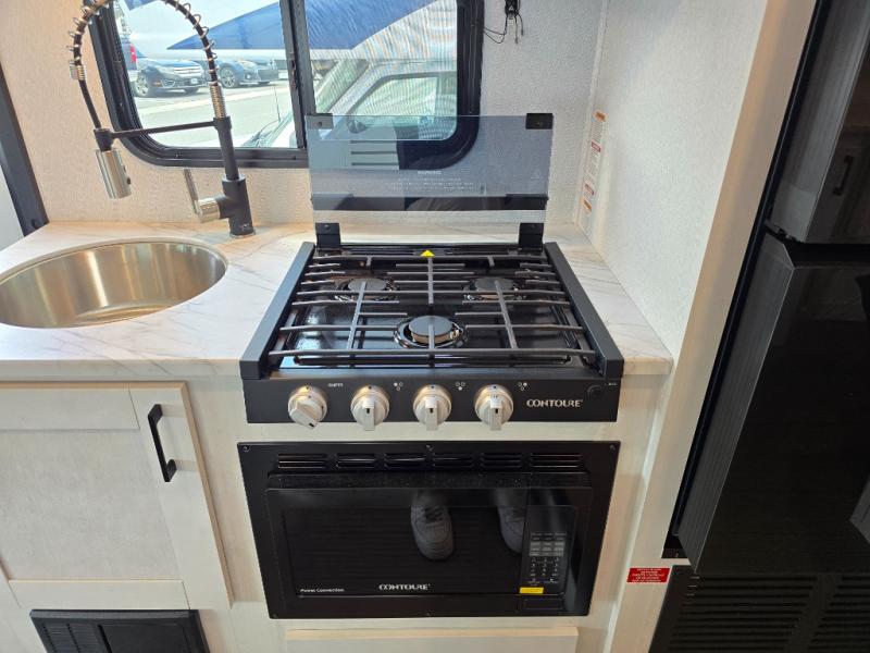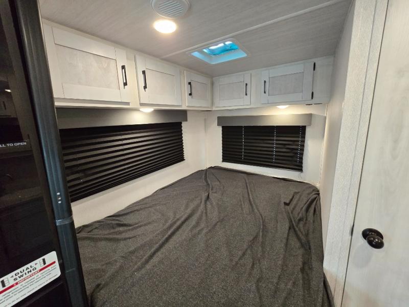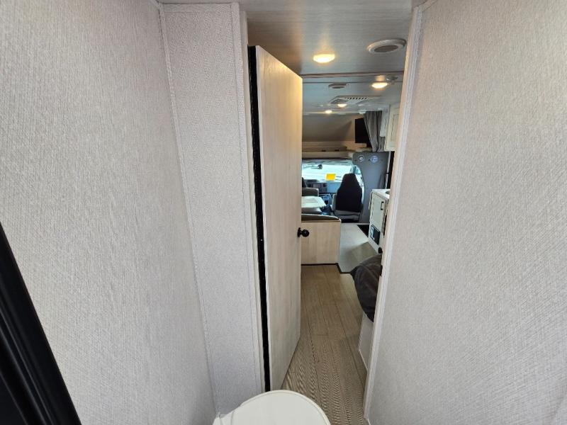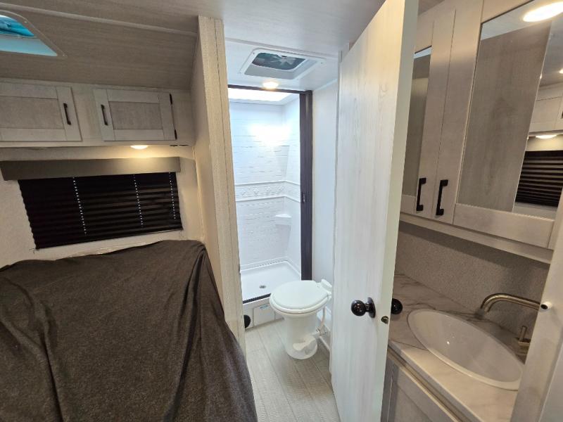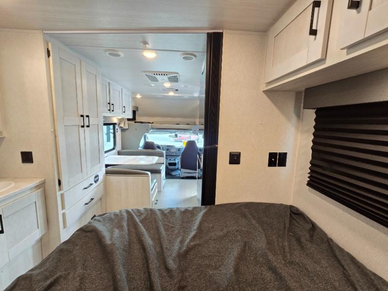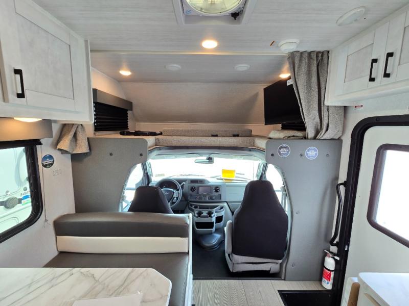 The journey will be oh-so enjoyable when you use this Entrada Class C gas motorhome to explore! You will be able to create meals each day you are on the road because the kitchen has everything you will need, like a convection microwave with air fryer technology, a round sink, a cooktop, a flip-up countertop, and a 10.7-cubic foot refrigerator. There is even a pantry/wardrobe to store spices, chips, or canned goods. The rear of this unit includes the queen bed in one corner and the private bath in the other, and you can close the privacy curtain here to make a master bedroom for extra comfort!