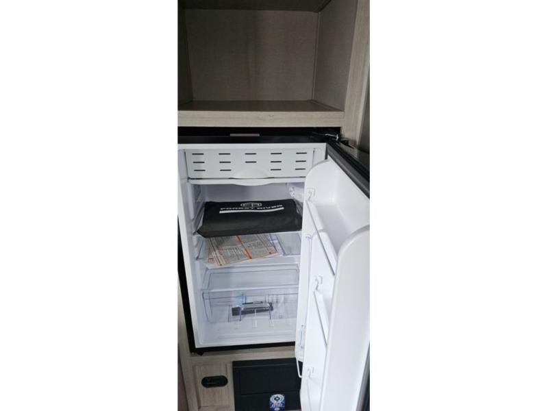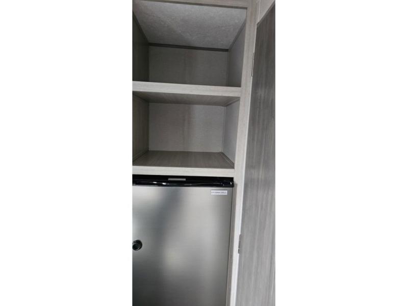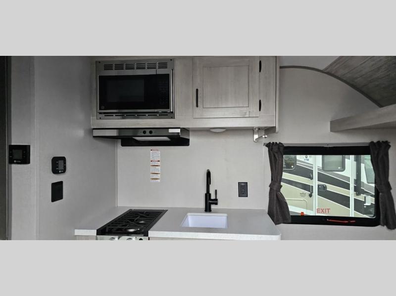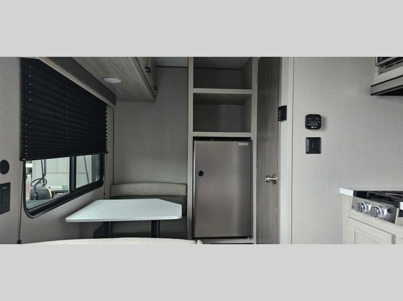 This lightweight travel trailer includes everything you need for comfortable camping trips at the lake. You can make your meals on the two burner cooktop or in the stainless steel microwave, and a 3.3 cu. ft. 12V refrigerator will keep leftovers fresh. A front queen bed provides a great night's rest, and there is a 29" booth dinette that will double as both dining and additional sleeping space. And a private bath with a 24" x 32" shower and toilet will let you easily freshen up without having to use the camp's facilities!