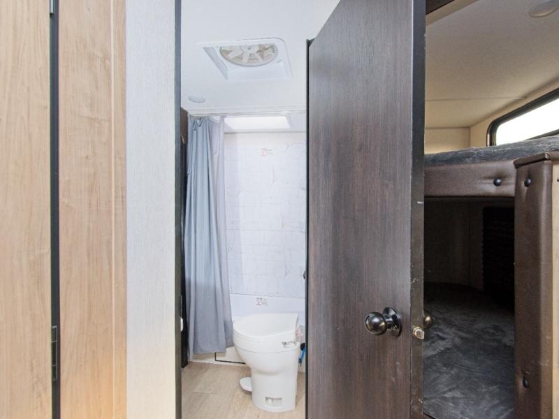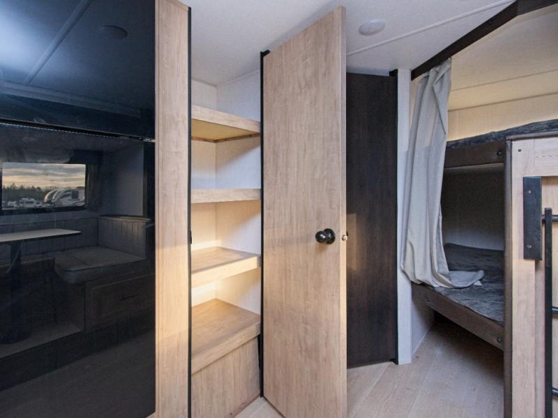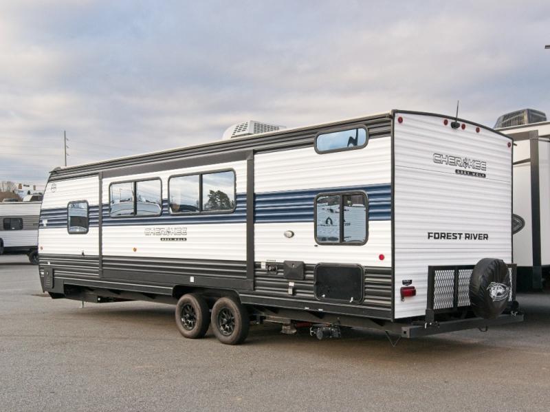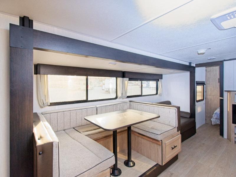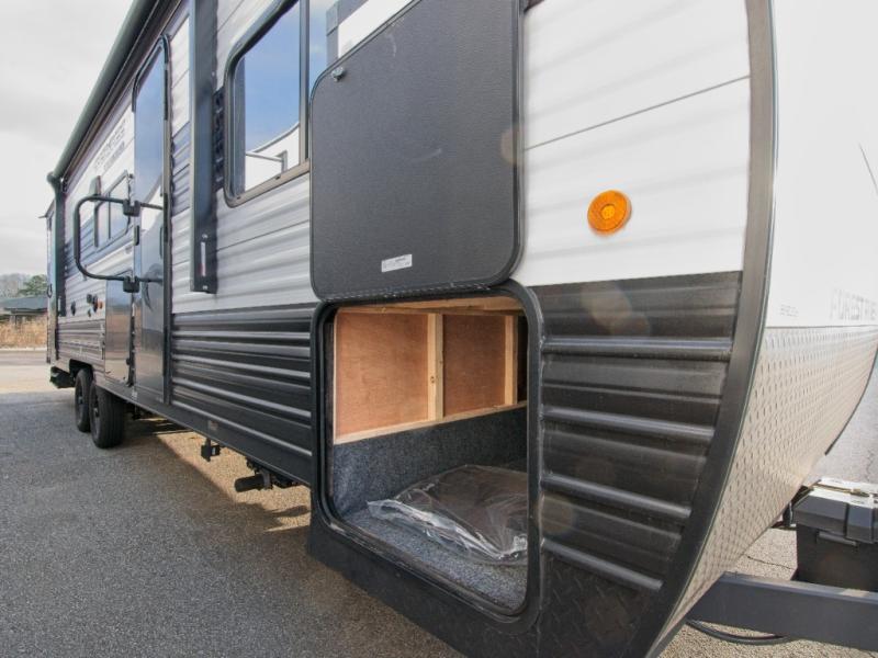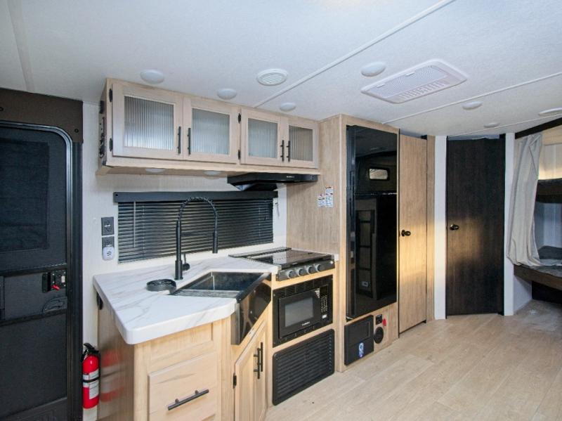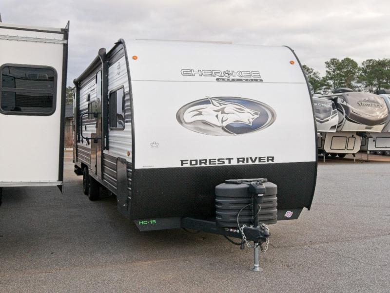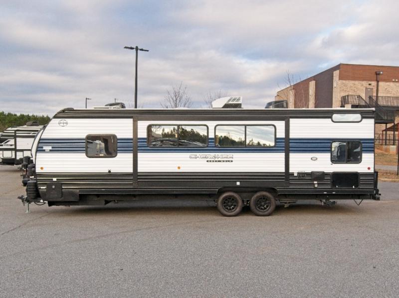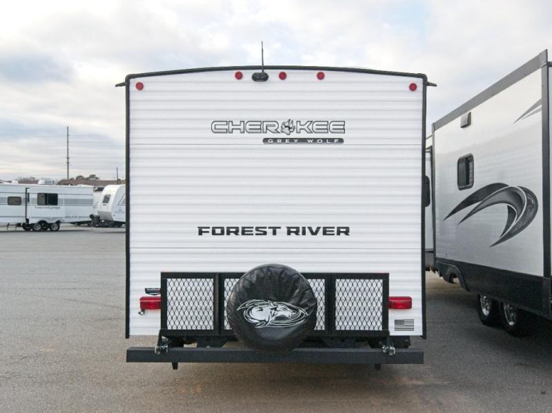 Enjoy family adventures in the Cherokee Grey Wolf 26DBH—featuring double-size bunks and an outdoor kitchen for comfort and fun wherever you go.