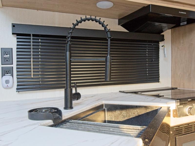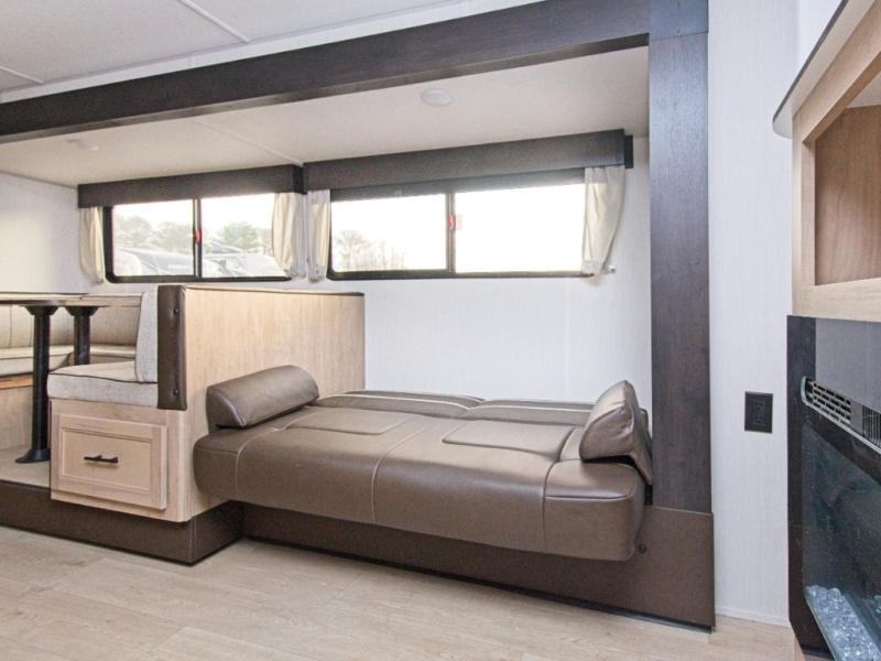 Stock up for your adventures with the walk-in pantry, and cook delicious meals in the fully equipped kitchen or take it outside to the outdoor kitchen for a true camping experience. At night, everyone will sleep comfortably with double-size bunks, an RV king bed, and convertible furniture.