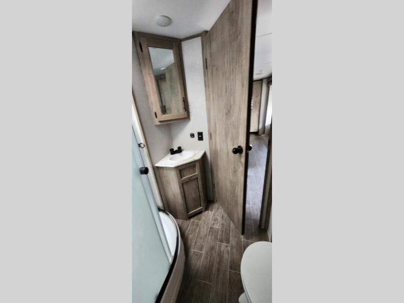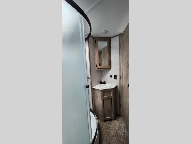 With any Cherokee Alpha Wolf travel trailer by Forest River, you'll enjoy outstanding amenities, quality construction, and an affordable price. Each model features a "ToughBend" rigid skirt metal design, 5/8" tongue and groove plywood floor decking, and a "SuperTruss" roof structure built for countless camping memories. There is a pet friendly "clean sweep" floor design with no heat vents indoors, along with a super lumen lighting system, a 15,000 BTU quick cool central air conditioning, and many more comforts. There are many convenient exterior features such as, Leash Latch pet safety technology, an outside shower with hot and cold water, and exterior steps with oversized landing and quick release. The Weather Guard Package will add protection against the elements with an armored underbelly tank enclosure and forced air heat, thermo-control reflective safety glass windows, and upgraded laminated exterior walls with block foam insulation!
