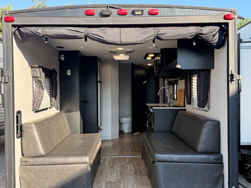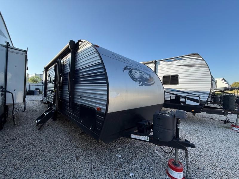 SUPER CLEAN, DELIVERY AVAILABLE IN ALL 48 STATES! 2022 FOREST RIVER CHEROKEE GREY WOLF 22RR LIMITED EDITION TOY HAULER W/ PARTY DECK . Length is 29FT. WITH A 13FT DEEP TOY BOX. SUPER NICE! PRIVATE QUEEN BED WITH STORAGE CABINETS ABOVE AND UNDERNEATH. 2 FOLDING WALL SOFAS CONVERT INTO SLEEPERS. SUPER NICE FINISH THROUGHOUT THIS TRAILER. BEAUTIFUL COMPACT KITCHEN WITH MARBLE-LIKE COUNTERTOP. STAINLESS STEEL SINGLE BASIN SINK WITH COVER. 2 BURNER STOVE TOP WITH LED LIGHTING. STAINLESS STEEL DUAL-POWER REFRIGERATOR. REAR BATHROOM & SHOWER.. PLENTY OF STORAGE COMPARTMENTS ALL AROUND THIS TRAILER. GLASS ENTRY DOOR FOR EASY ACCESS. UNDERNEATH BED STORAGE. SPACIOUS EXTERIOR STORAGE COMPARTMENT. FULL STEREO SYSTEM WITH INDOOR AND OUTDOOR SPEAKERS.. AWNING WITH LED LIGHTING, . 200W FACTORY SOLAR CONNECTIONS. WATER HEATER. REVERSE CAMERA. Sleeps 6, SUPER COLD A/C. Super Clean. SUPER NICE TRAILER ONLY 4871 UVW. CAN BE PULLED WITH A SMALL SUV. 30AMP POWER. OUR PRICE $17,995. SEVERAL SUPER NICE RVS TO CHOOSE FROM. We are located in KENNEDALE TX. We show Rv's 7 Days A WEEK BY APPOINTMENT. Call BRET 817*805*0067 or AMY 817*658*4633 FREE DELIVERY AVAILABLE ON ALL 48 STATES. WE INSPECT & GO THROUGH ALL TRAILERS TO ENSURE OUR CUSTOMERS ARE 100% SATISFIED.