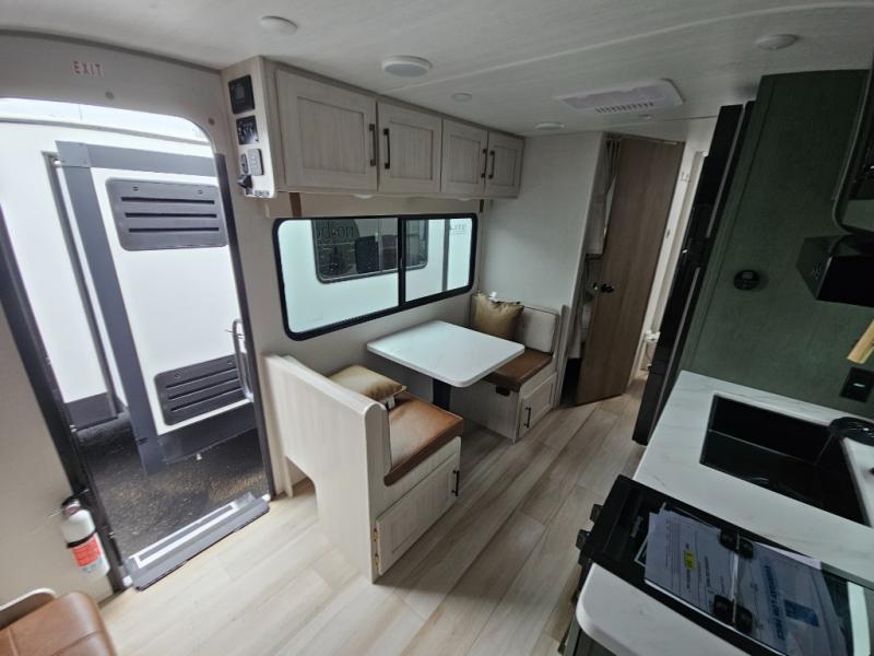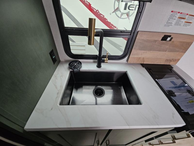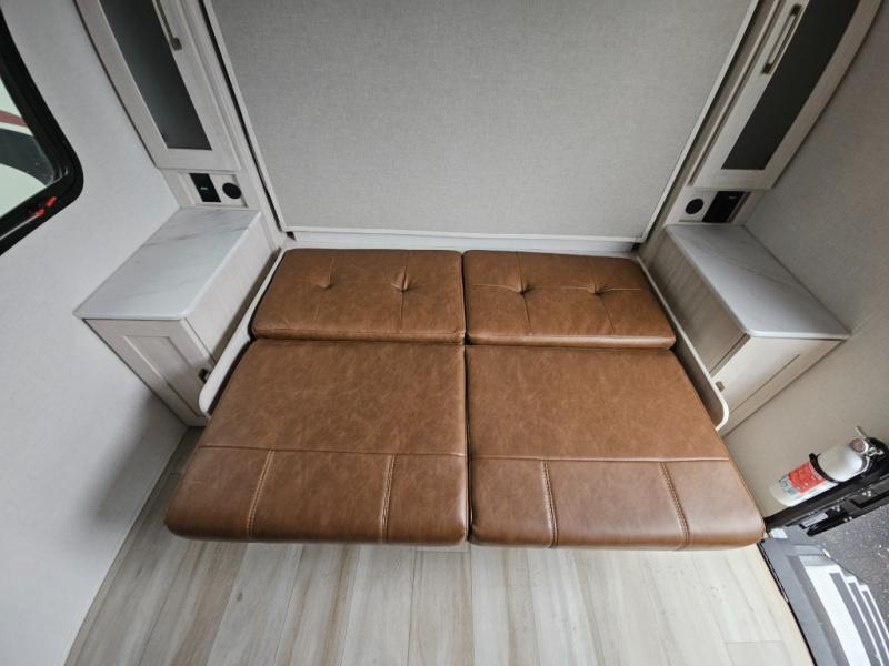 With this No Boundaries travel trailer, you can go to places you've never been before! The patio awning will protect you while you're outside having fun, and once you make your way inside, you can sit down at the booth dinette for some dinner. The 44" x 74" double-size bunks will give you extra sleeping space without taking up too much room, and the Murphy bed also utilizes space well by folding away during the day to reveal a sofa. Outside, you'll find slam latch cargo doors with pass-thru lighting, an outside kitchen, a pre-installed solar panel, and more! When the optional Beast Mode Package on this model is chosen, you'll enjoy a 400-watt solar package, a fresh water filter, a Maxxair roof vent cover, plus a Beast Mode independent suspension for better handling.