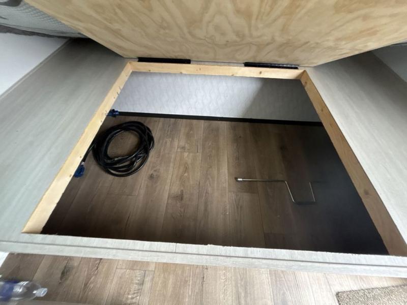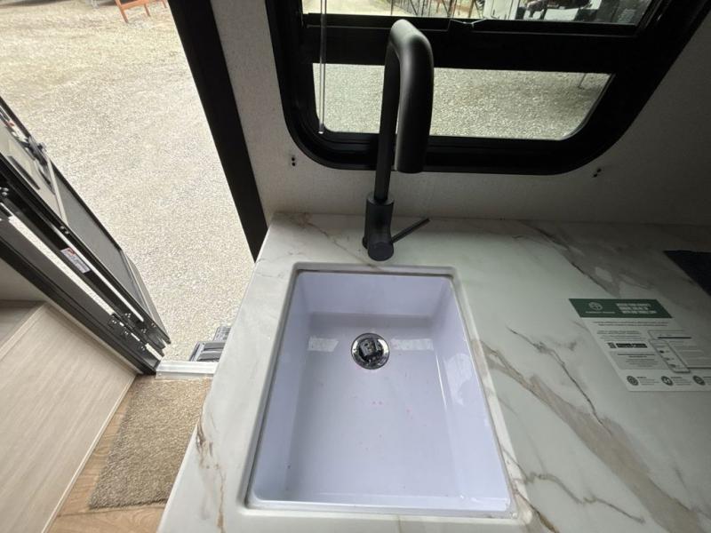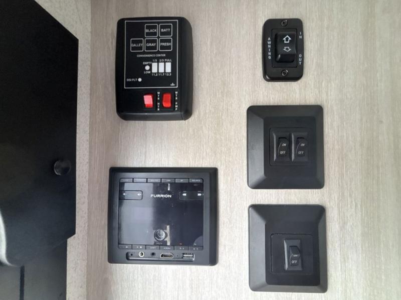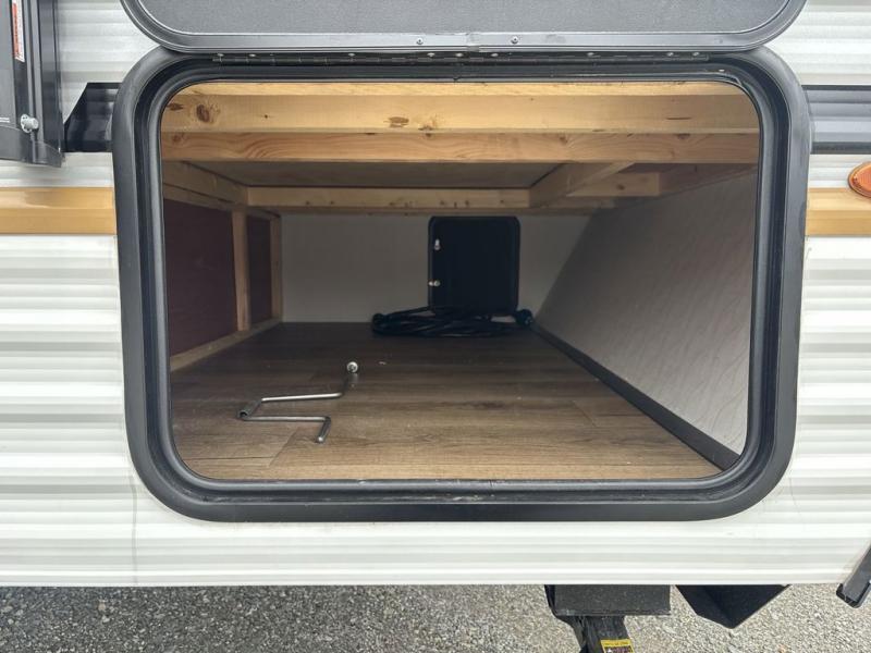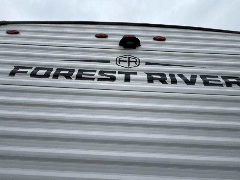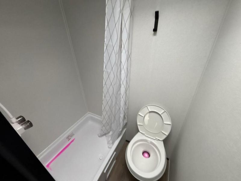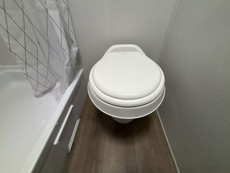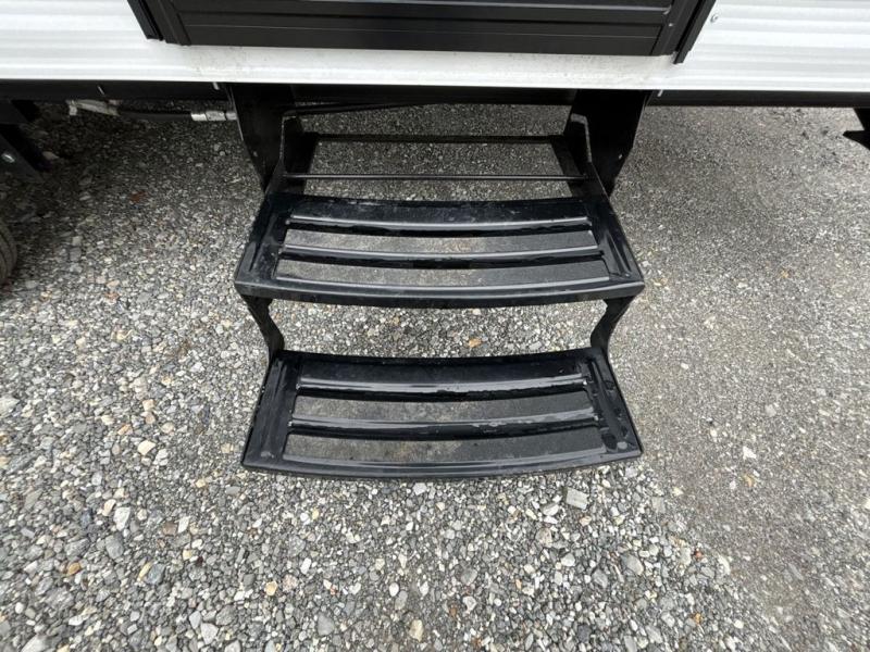 It will be so easy to enjoy camping trips in this single axle travel trailer! There is a front RV queen bed with flip-up storage at the foot of the bed for your belongings, and any additional guests can sleep on the bunk beds and sofa. A full kitchen includes a two-burner cooktop and microwave to cook meals each day, and the 12V black glass refrigerator will keep your food fresh. And a private bath with a toilet and shower will let you freshen up without having to use the camp's facilities!