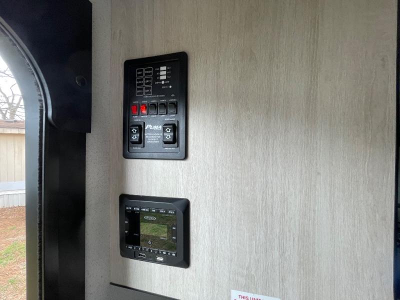 The Puma Camping Edition by Forest River offer an affordable travel trailer for rookie campers or seasoned RVers! They are built with 5/8" tongue and groove plywood flooring and a front diamond plate for added protection. There are also exterior magnetic baggage door latches, back up camera prep, a battery disconnect. Head inside to find Thermofoil countertops with a smooth drop edge, bedroom USB ports and outlets, and pleated shades in the living room.