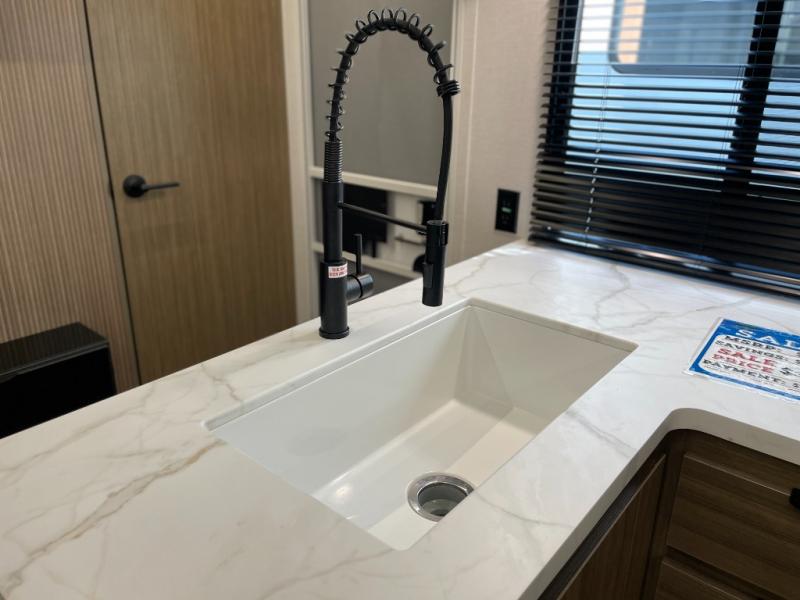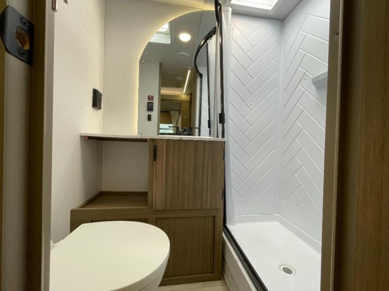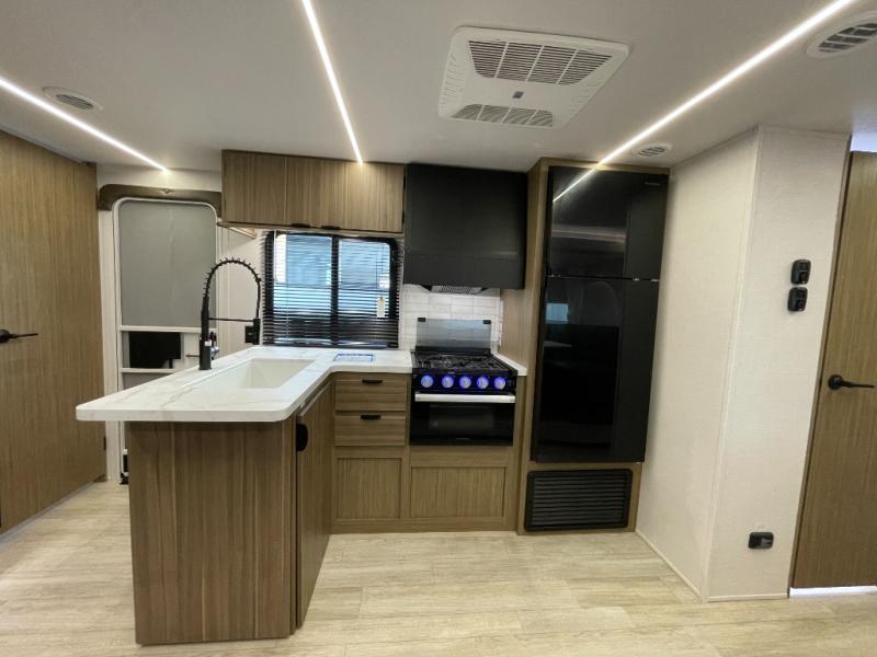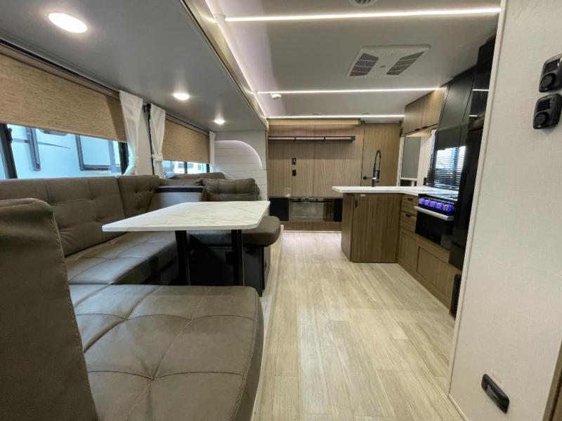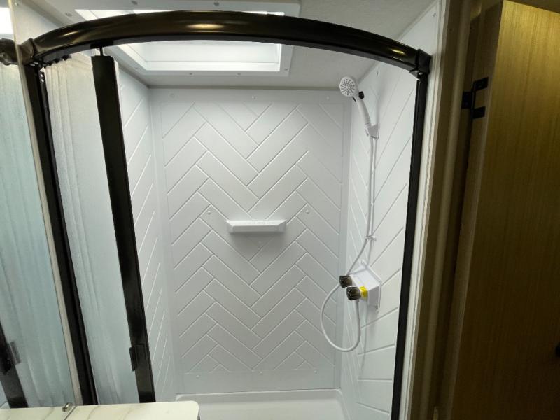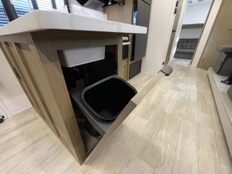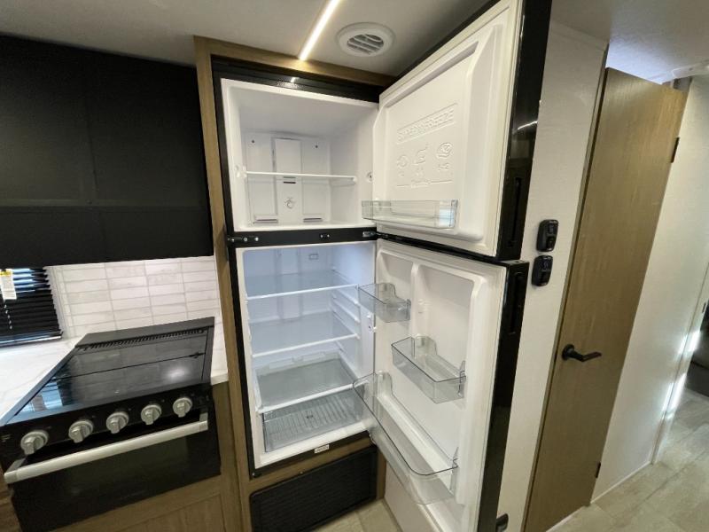This versatile bunkhouse travel trailer is big enough for the whole family! The private bunkhouse has a set of 30" x 74" bunk beds and a 30" x 74" bunk bed above a Jiffy sofa. Just outside the bunkhouse is a pantry big enough to store everyone's favorite snacks, and a full bathroom with a walk-in shower. The cooktop is just waiting for you to create a delicious meal, and the U-shaped dinette welcomes everyone to enjoy each meal in comfort, plus there is a large panoramic window for a perfect view of your surroundings. Any time of day kick back on the Versa-lounge and relax by the fireplace at the entertainment center. The exterior features a pass-through storage area for you to keep your outdoor camping gear stowed away when not in use, a 16' awning to protect you, and an exterior camp kitchen!
