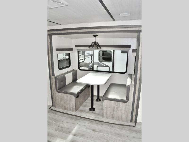 Head to your local state park for fun weekends in this cute couple's trailer. You can convert the sofa to a queen-size Murphy bed each night, and if you have guests they can sleep on the booth dinette. The chef of your group will have their choice to cook indoors on the three burner cooktop, or outdoors on the gas griddle. There is also an outdoor kitchen with a sink, a refrigerator, and a shelf to store spices. Each day you can clean up in the full bath with an upgraded slow-close shower door and a linen closet for clean towels.