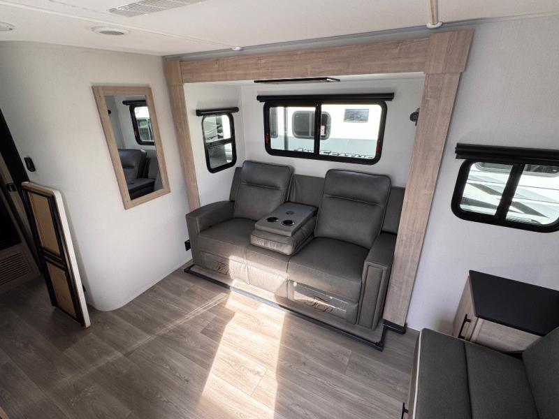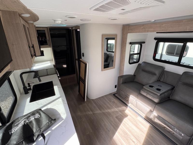 Let your imagination run wild with the possibilities that the Grand Design Imagine XLS travel trailer can provide! The Imagine XLS has been built with oversized tank capacities, an extra-large 2" fresh water drain valve, a ducted A/C system, a power tongue jack, and a heated and enclosed underbelly with suspended tanks. There is a designated heat duct to the subfloor and a residential ductless heating system throughout. For outdoor adventures, the electric awning with LED lights will enable you to stay protected, and the Tuff-Ply pass-thru flooring will withstand your adventures. You will also love the XLS Solar Package that comes with a 200W roof mounted solar panel, a 30 Amp charge controller, a 12V 10 cu. ft. refrigerator, and roof mounted quick connect plugs!