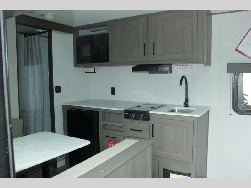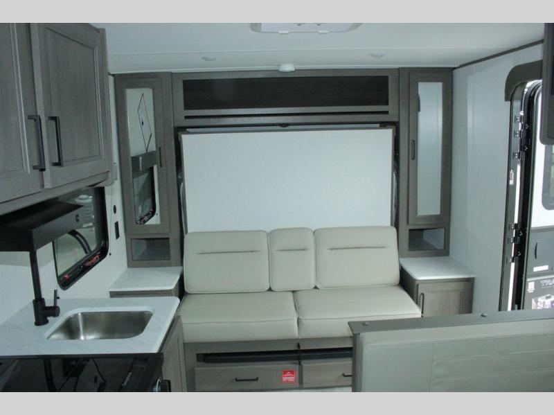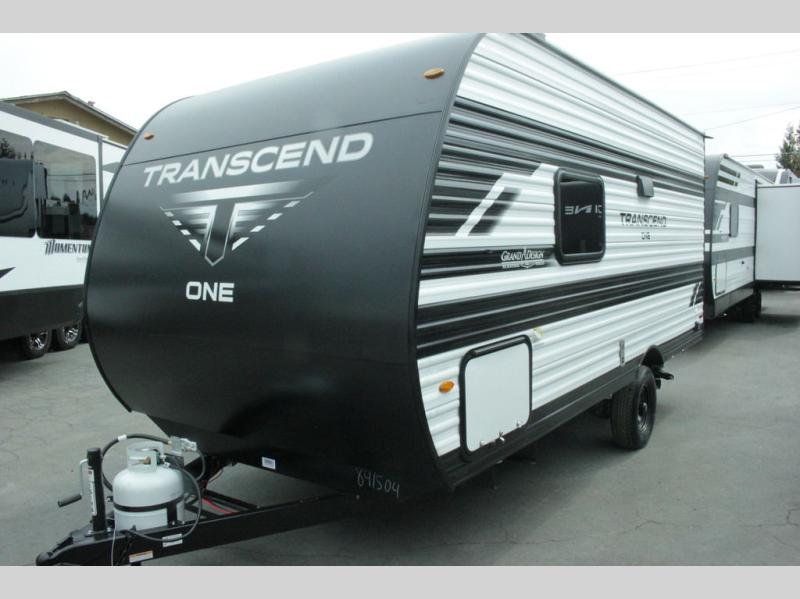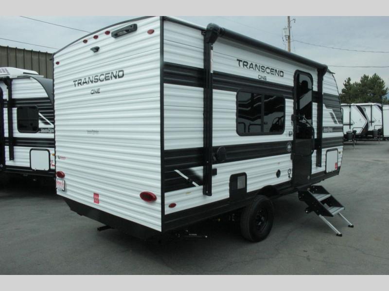 With any Transcend One travel trailer by Grand Design, you will enjoy lightweight towing thanks to their single-axle. There are many interior comforts to make camping easier than ever, such as recessed lighting, residential countertops, and a 6' 6" interior height. Each model is constructed with a heated and enclosed underbelly with suspended tanks, a moisture barrier floor enclosure, and Thermofoil over the roof and front cap for added protection. And a JBL sound system will let you listen to tunes as you visit under the power awning with a Fusion light!