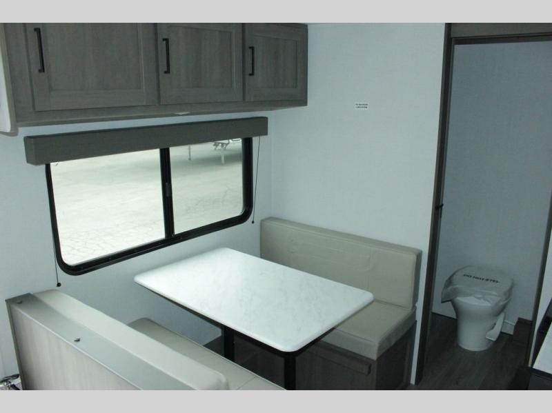 This is the perfect couple's trailer with versatile seating and sleeping space! You'll find a queen-size Murphy bed up front with storage space beside and above plus a full rear bath for added privacy. Once you've made lunch in the full kitchen, you can dine at the booth dinette or take your plate outdoors to sit under the 10' power awning. You'll also find pass-thru storage outside that will be perfect for fishing poles, lawn chairs, tools and more!