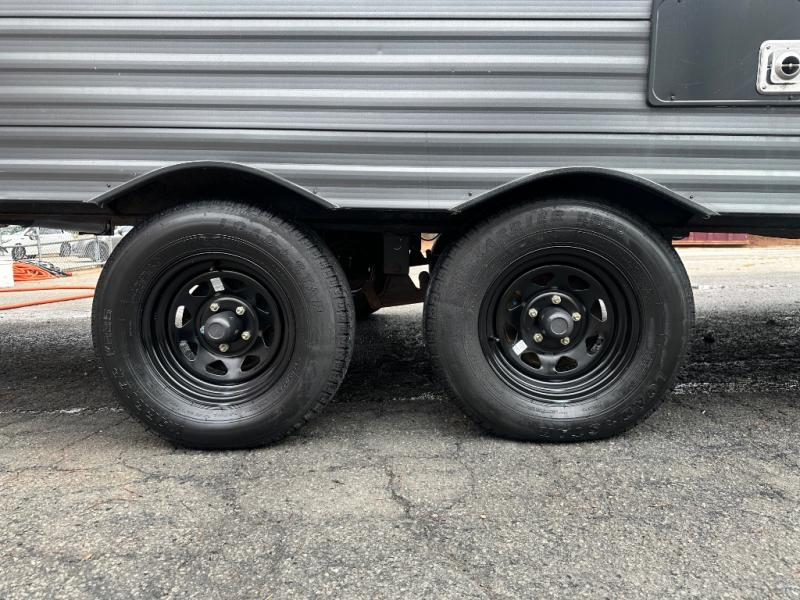 A trip to the lake or your favorite state park just got better in this comfortable travel trailer. Whether you're relaxing on the sofa or booth dinette, cooking in the spacious kitchen, or sitting outside under the electric awning with LED lights, you will enjoy every minute you camp. You and your spouse will have a private bedroom up front with a queen bed and dual wardrobes, and there are double-size bunks for the kids or your friends!