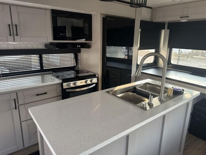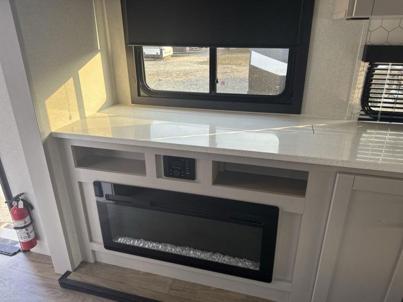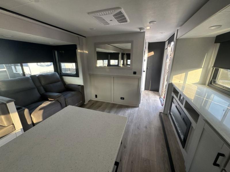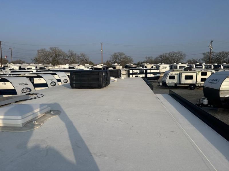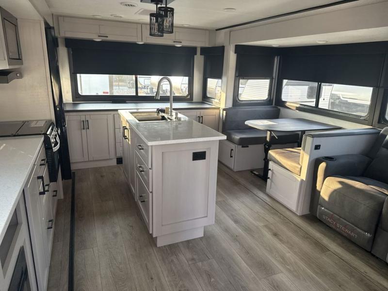 Perfect for your trips or weekend getaways, this travel trailer is the one! You will find a rear desk with an ottoman plus overhead storage if you plan to work while you're away from home. The dual opposing slides in the combined kitchen and living area will create an open floorplan, and the kitchen island will provide the chef of your group with more counter space. There is a tri-fold sofa and booth dinette that double as seating and sleeping space, and the full bath onboard will keep everyone clean. Don't overlook the front private bedroom with a queen bed and plenty of storage space for your belongings!