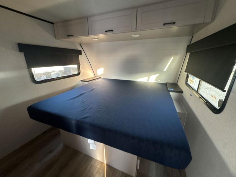 With any Jay Feather travel trailer by Jayco, you will enjoy lightweight towing, convenient exterior amenities, and at-home comforts inside! The Overlander 1 Solar Package included within the Jay Sport Package comes with a 200W solar panel and a 30-amp digital controller so you can enjoy some off-grid camping. There is also a modern graphics package, Solid fold-down step with aluminum tread steps on the main entry doorstep, and Climate Shield 0 -100° F tested weather insulation package that will allow you to camp in various types of climates. The Customer Value Package will make time outdoors easier than ever with a power tongue jack and Automotive-style aluminum rims, plus radial tires with self-adjusting electric brakes. More exterior features include a Keyed-Alike doors, a Magnum Truss roof system, and the list goes on! And we haven't even touched on the interior comforts, like the seamless countertops and Residential vinyl flooring throughout, decorative kitchen backsplash, handcrafted hardwood door/drawer fronts, and multiple USB charging ports to keep you going!
