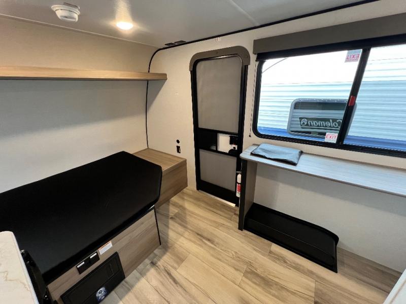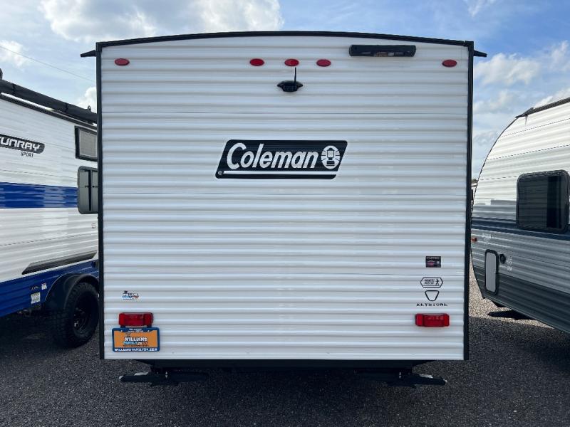 With any Coleman travel trailer, you will experience Keystone's quality throughout, plus enjoy lightweight towing to the campground or RV park. There is a walkable roof, tinted safety glass windows, and a power awning outdoors for an inviting space to relax. The friction hinge entry door is another convenience you'll appreciate, and there is Furrion backup camera prep if you want the option to make parking easier. Inside, you'll find blackout night shades, a 6' 6" ceiling height, bedside outlets, and many more comforts.