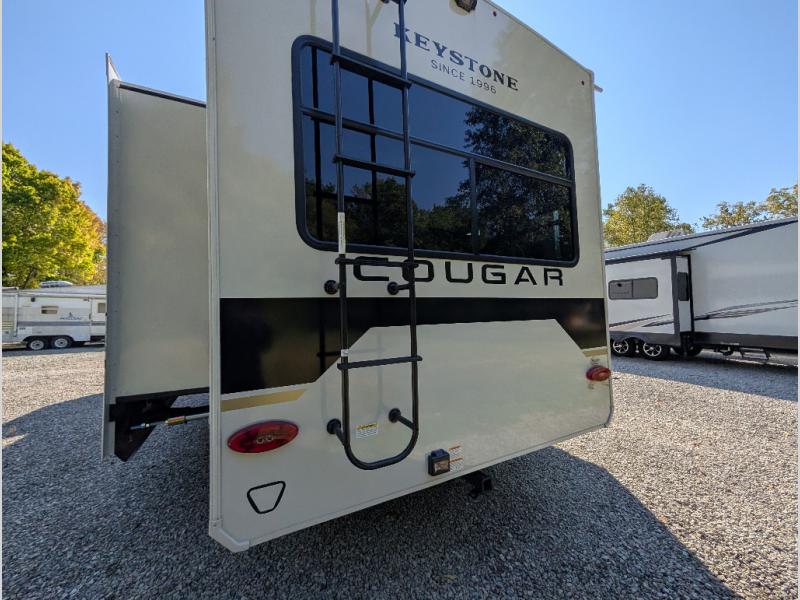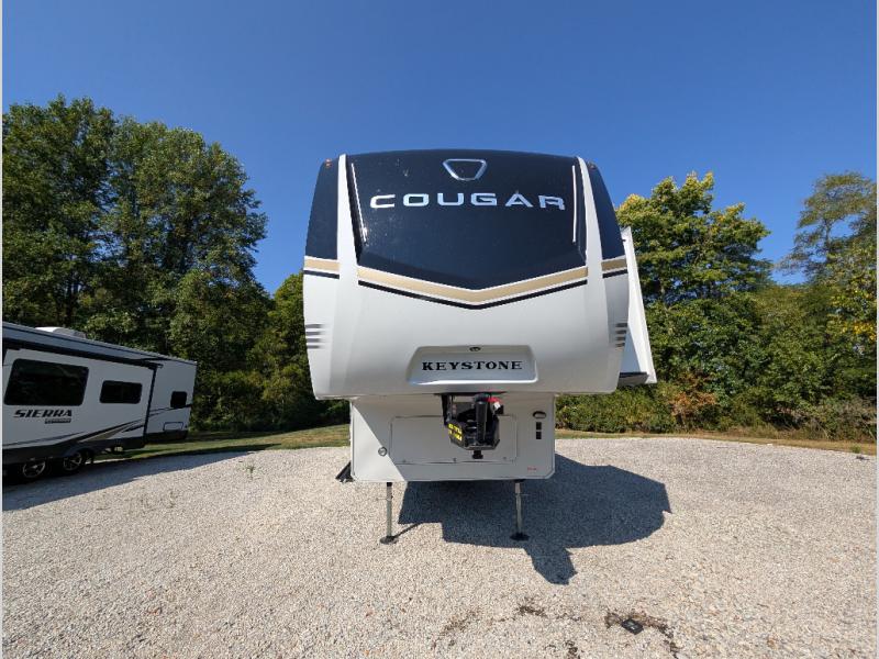 Spend more time having fun and less time worrying about your RV with the Keystone Cougar fifth wheel! These units have all that you will need for excellent vacations. The interior comes with 5/8" one-piece DynaSpan® flooring, tall slide outs for added comfort and head room, night roller shades throughout, and residential, shaker style hardwood cabinet doors and drawers. You will also enjoy decorative crown molding, a 5,500 BTU electric fireplace with thermostat control and remote, and a Max Air exhaust fan with rain sensor. The exterior is also fully outfitted with a convenience center, friction-hinge entry door, electric four-point auto leveling system, and slam-latch baggage doors. Each model is available with the optional Hero Edition. By choosing this edition, you can help support our nation's heros and their families by contributing to the Wounded Warrior Project. This optional package features an industry exclusive full-body paint matte finish, frameless windows, a glass entry door, blackout rims, and green LED exterior accent lighting; see dealer for more details!