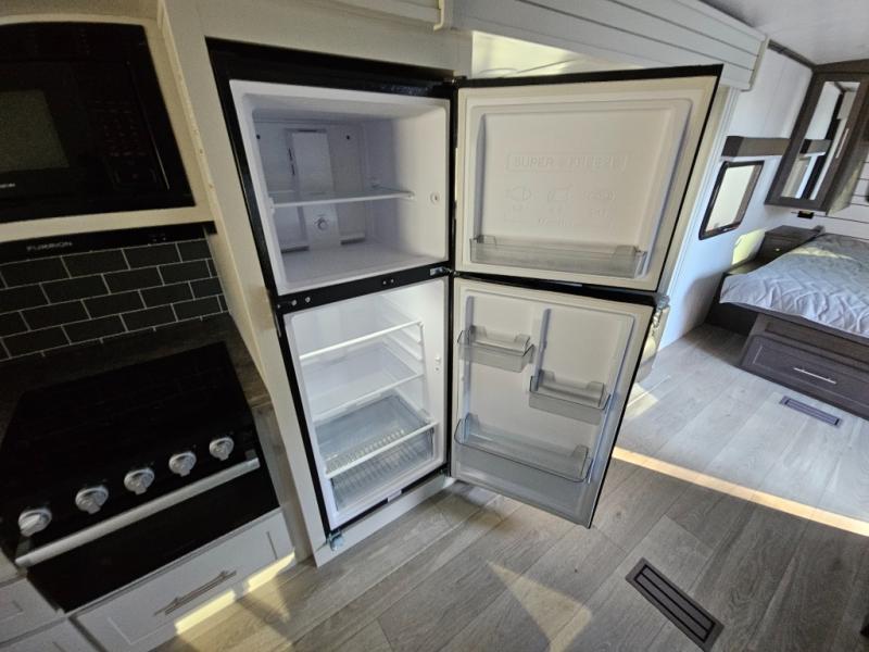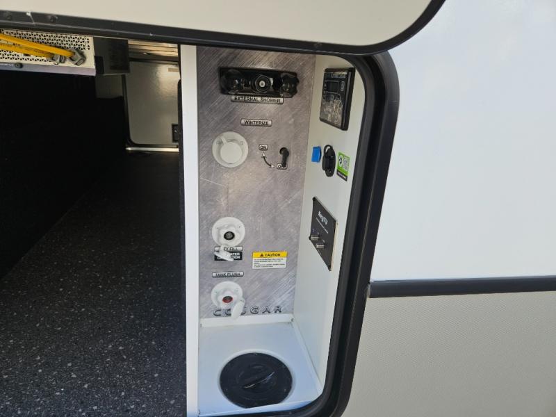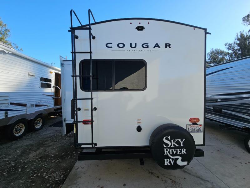 The Keystone Cougar Half-Ton fifth wheel and travel trailers are known as one of America's favorites for a reason! Some of those reasons are the exclusive features that come from Keystone, like the Winegard Air 360+ omni-directional rooftop antenna, the in-floor heating ducts, and the HyperCore composite wall construction with Vixen Fibrogloss high-gloss finish. The Cougar Half-Ton has a Climate Guard protection package with heat-deflecting white sidewalls, two roof attic vents, PEX plumbing and more to enjoy four season camping. Inside, you'll love the dimmable lighting, night roller shades throughout, shower skylight, and bedside USB outlets to keep your electronics charged.