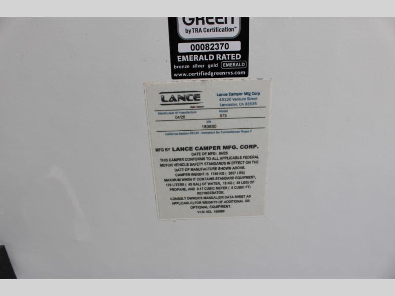 Lance truck camper 975 highlights: