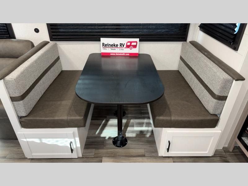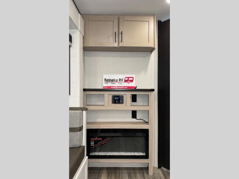 With Private Queen Bedroom, Aluminum Entry Steps, Dual Entry Doors, Rear Dual Lounge Chairs, Walk Thru Bath, Fireplace, Booth Dinette, Jack Knife Sofa, On Demand Water Heater, Spare Tire and Customer Convenience Package