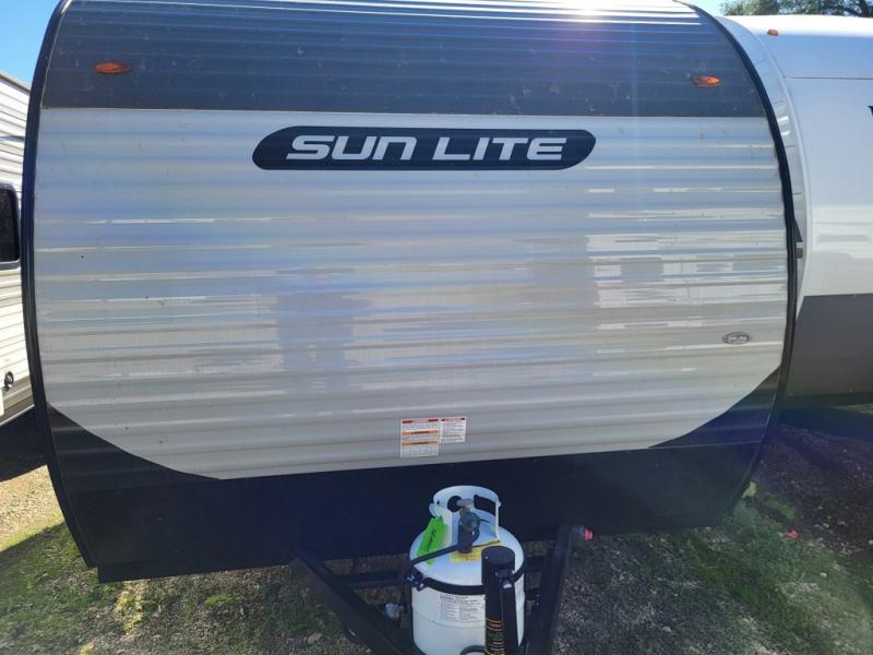 Each Sun Lite LTD travel trailer by Sunset Park RV is made with flexibility in mind. These lightweight models weigh under 3,000 lbs. for easy towing, and they offer best-in class interior storage for all your belongings. They are built with a one-piece PVC roof membrane and a durable rock guard that will help protect against rock and debris on the way to the campground. There is also an electric awning outside, along with a 100-watt solar kit, an outside shower, and more convenient features. You'll find a power roof vent in the bath, stylish window treatments, ball bearing drawer guides, and LED lights to name a few interior comforts.