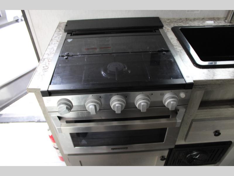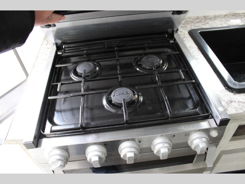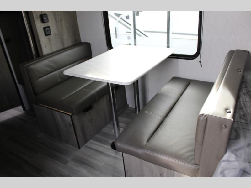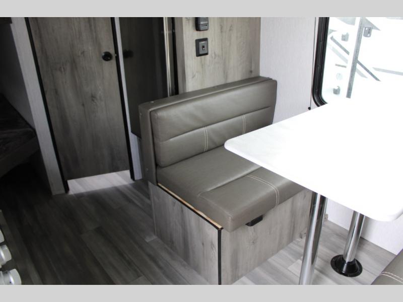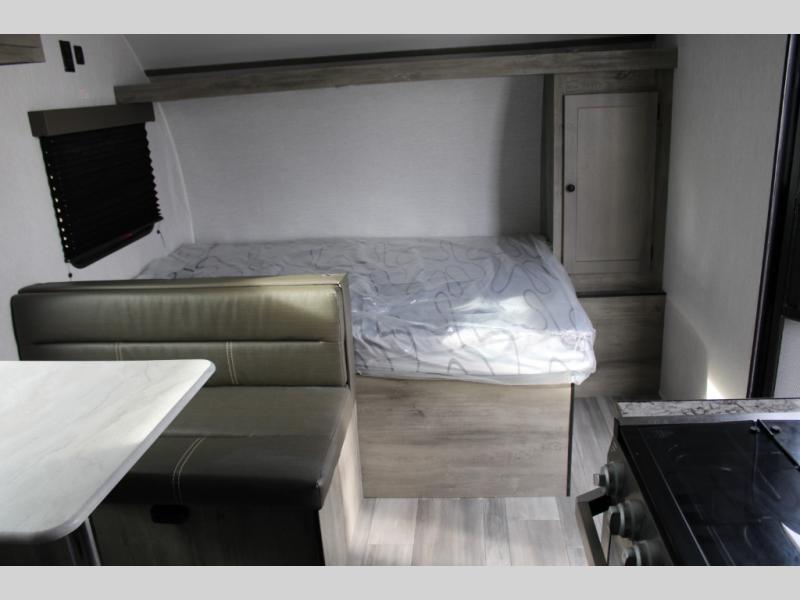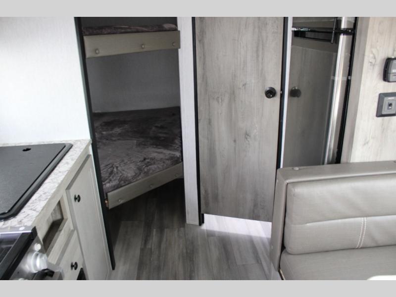 The perfect family-friendly travel trailer is found with this Sun Lite LTD model. You can take the front bed each night, while your guests or little ones take the double-size bunks towards the back. And if you're not needing the additional sleeping space, you can choose the desk option in place of the bunks. There is also a full bath right next to the bunks for easy nighttime use. The chef of your group can make meals using the three burner cooktop, and there is a double bowl sink for easy clean up. Once dinner has been cleaned up, you can play a game at the booth dinette, or head outdoors for an evening walk around the campground!