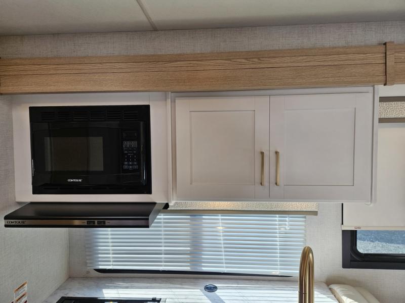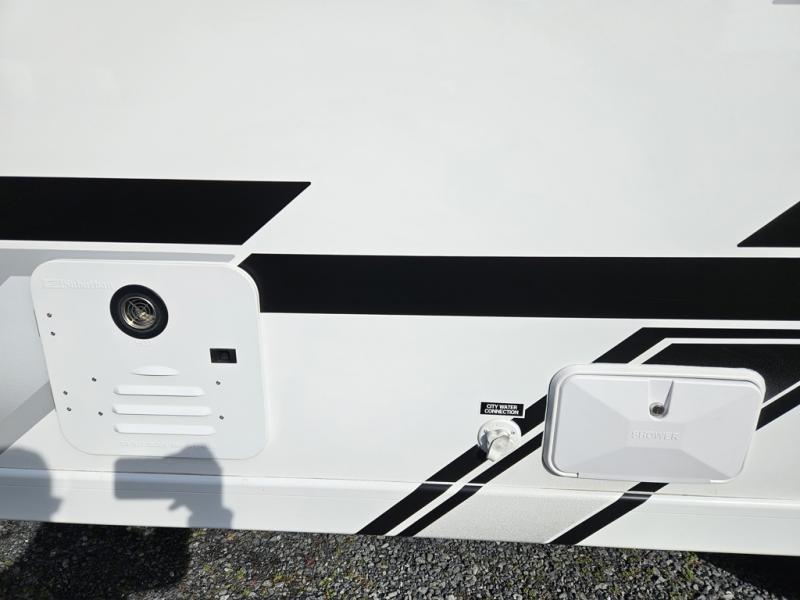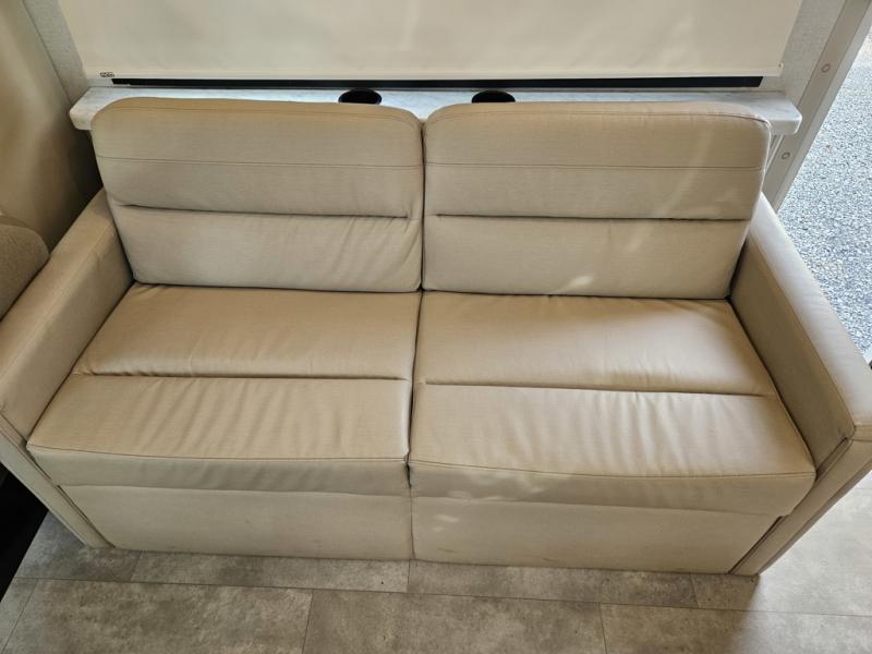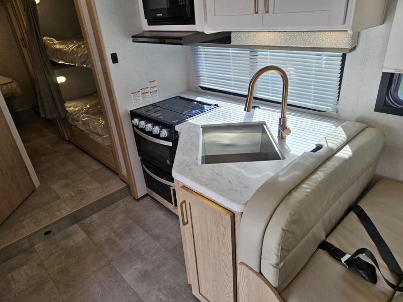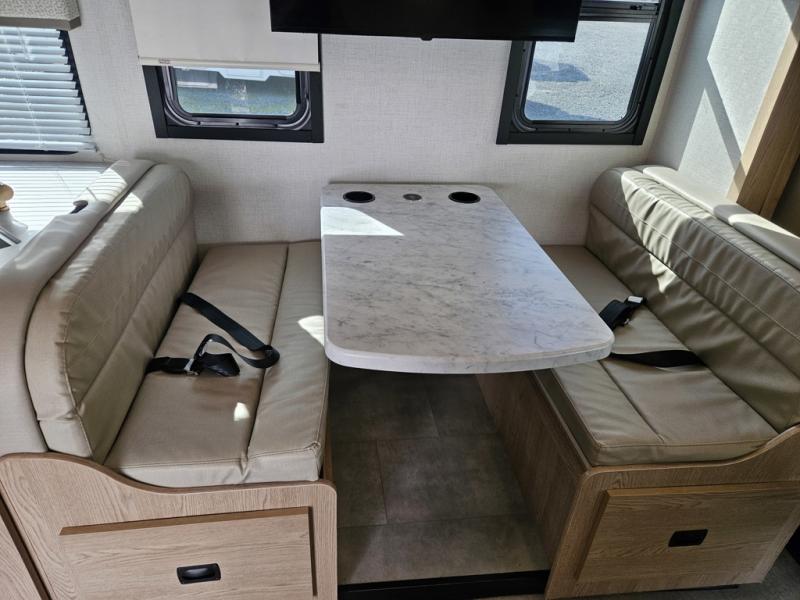 Experience a smooth ride to each destination with the Thor Motor Coach Chateau Class C gas motorhomes! There is a Ford E-Series chassis and each model includes an 8,000 lb. trailer hitch to bring the family car along. They are constructed with a welded tubular aluminum roof, sidewall cage construction, vacu-bond laminated roof, walls, and floor with block foam insulation to keep the heat and air conditioning inside. The slick fiberglass exterior with graphics package and black framed windows are sure to turn heads down the highway too. Inside, you'll be met with residential vinyl flooring, premium window privacy shades, a power bath vent, and pressed laminate kitchen countertops. There is even a tankless water heater for endless hot showers, a 4.0 kw dual gas/LP generator to keep you going, and a 100-watt solar charging system for off-grid capabilities!
