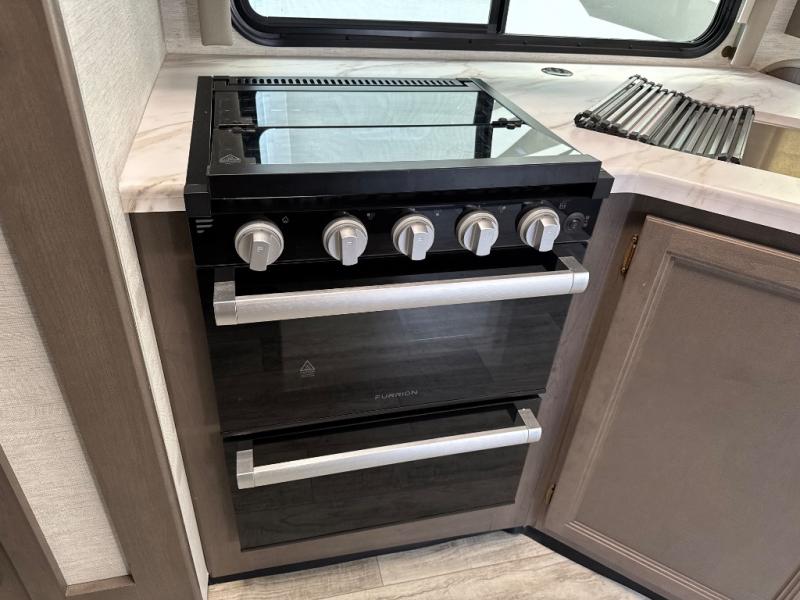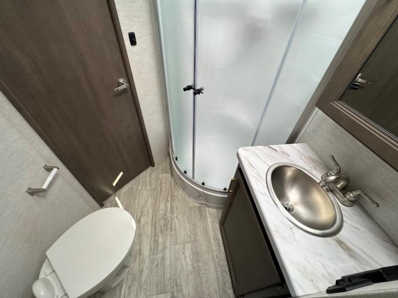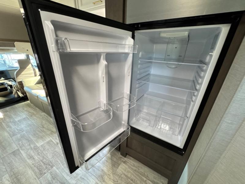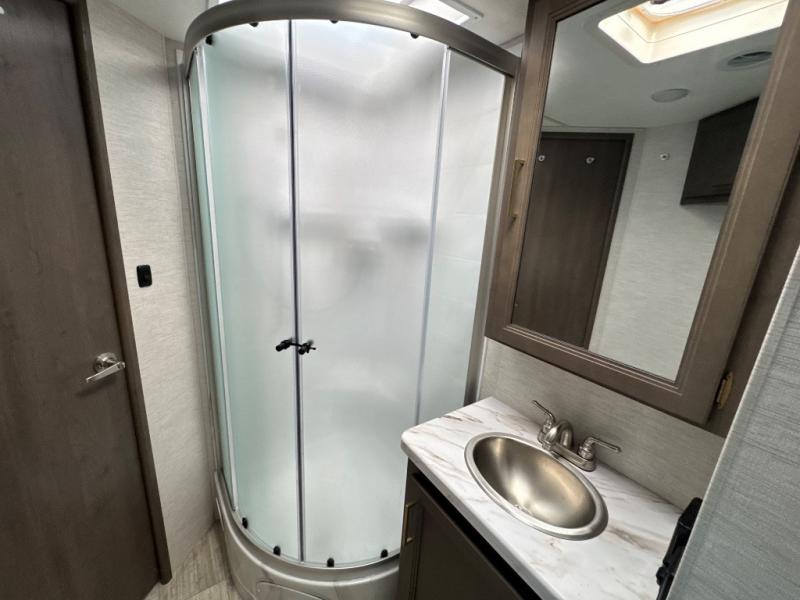 Bring the whole family with you in this motorhome! The grandkids can sleep on the set of 27" x 72" bunk beds, and you can sleep on the 60" x 75" queen bed in the rear private bedroom which also has a closet and dresser for your clothes and TV prep for entertainment. Plus, you can access the dual entry bathroom directly from the bedroom or the hallway next to the bunk beds. Relax in true comfort on the 68" jackknife sofa while you watch a movie on the 40" TV or play a few card games at the 71" Dream Dinette. There is also a 52" x 96" bunk over cab for even more sleeping space!