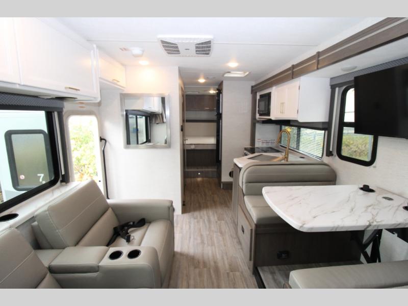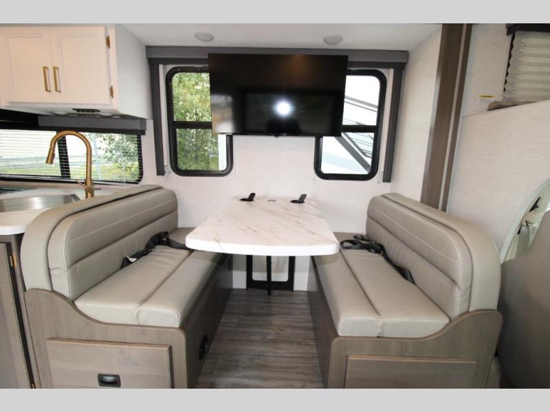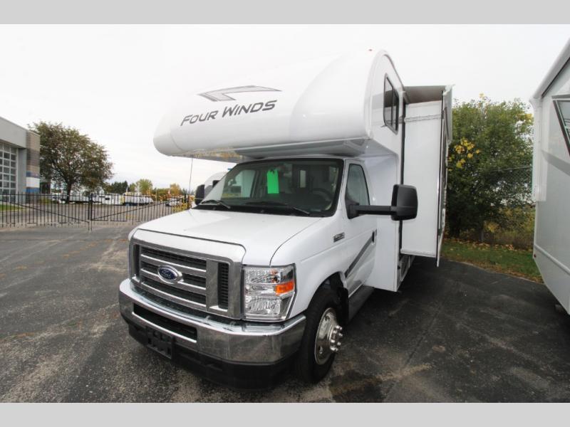 With any Four Winds Class C gas motorhome, you can travel in a trustworthy Ford E-Series chassis with 325HP. Each is built with welded sidewall cage construction and a welded tubular aluminum roof, a one-piece fiberglass cap, and includes a slick fiberglass exterior with graphics package for style and years of enjoyment on the open road. Inside, you will enjoy the well-equipped kitchen, the spacious bathroom, the sleeping accommodations and the Winegard ConnecT 2.0 WiFi/4G/TV antenna that allows you to stay connected. With several floorplans to choose from and options to add, you will surely find one that fits your family's needs or your friend's approval. Choose today!