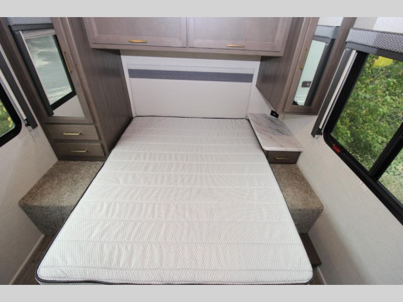Perfect for a couple or a growing family, this coach will allow you to enjoy inside comforts and outdoor scenery where ever you drive and park! You will have great views out of the many windows when you are indoors, and the power awning offers an outdoor living area protected by the elements when you want some fresh air. The cook will love the large single bowl stainless steel sink with a single handle faucet with a pull-down sprayer when cleaning fruits and veggies, the gas cooktop and microwave when making meals, as well as the 12V refrigerator to hold all the cold items. The slide out creates even more floor space, the furniture offers a place to dine and visit as well as sleep, and the private bedroom with a full bathroom just steps away will complete the deal! You will also appreciate the optional exterior kitchen and optional exterior TV for more choices!