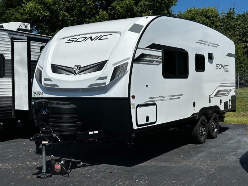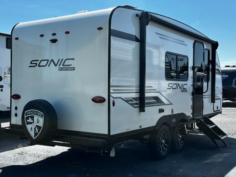With any Sonic travel trailer by Venture RV, you begin with Next Generation in RV frame technology with the NXG Huck-bolt frame, AZDEL Onboard composite panels, tongue and groove plywood floor decking, radiant foil bubble insulation-wrapped tanks, 360-degree residential fiberglass insulation and radiant foil insulation, plus a forced-air heated and enclosed underbelly which is part of the Weather-Shield package. There is a Highway Package that comes mandatory, and the Fall Package 1.6 provides a motion light in the bathroom, a dish drying sink cover, a power tongue jack, and WIFI prep to mention a few features. Get ready for comfort and style in a Sonic ultra-lightweight, tandem-axle travel trailer of your choice!