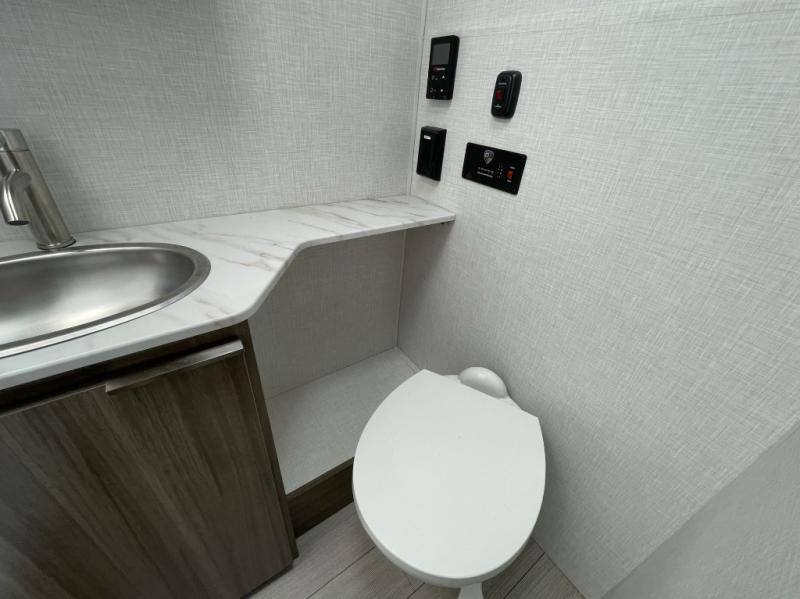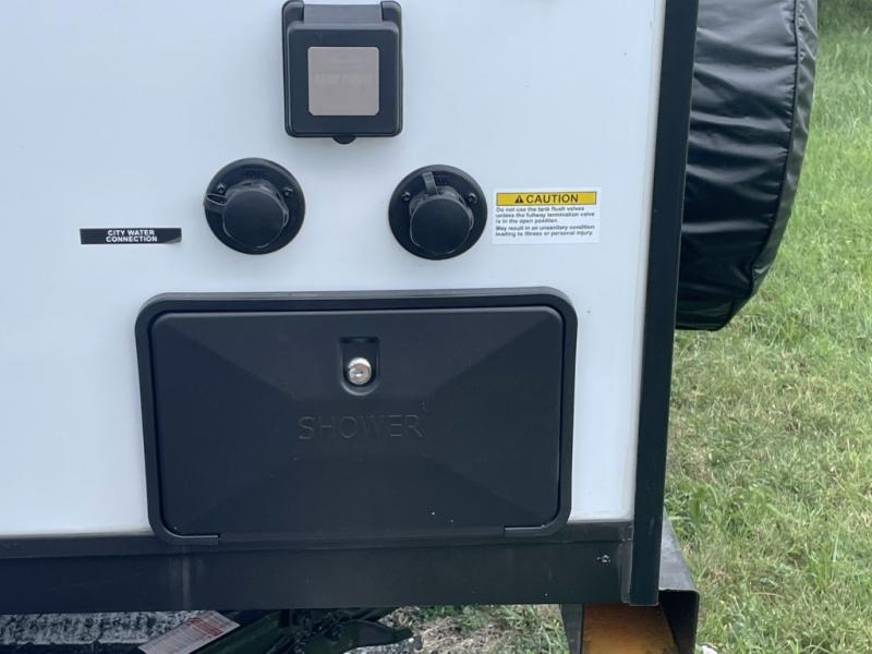 No need to rely on campground restrooms. Enjoy your own private bathroom with a full shower, toilet, and storage options. A motion activated light adds extra safety during nighttime use.