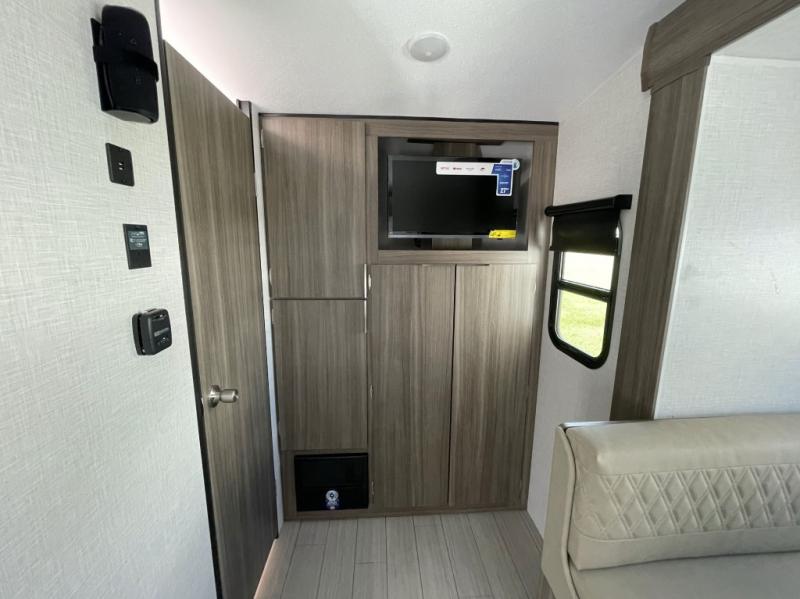 Enjoy thoughtful extras like a JBL Flip Bluetooth speaker, lighted power tongue jack, motion light in the bathroom, and WIFI prep for staying connected on the road. These features combine to make every trip more enjoyable and comfortable.