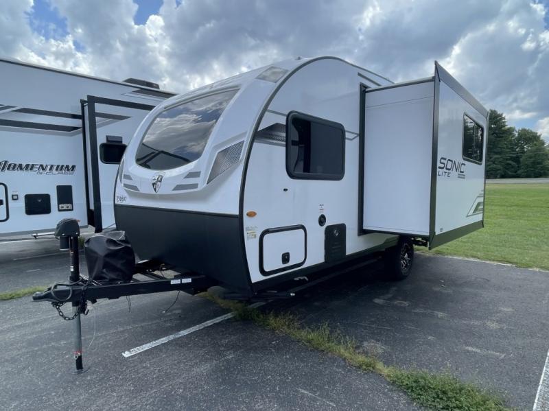 At just the right size and weight, the Sonic Lite SL169VMK is perfect for small trucks and SUVs. The single axle design makes it easy to maneuver into campsites, while the pass through storage and solid steps make setting up fast and simple.