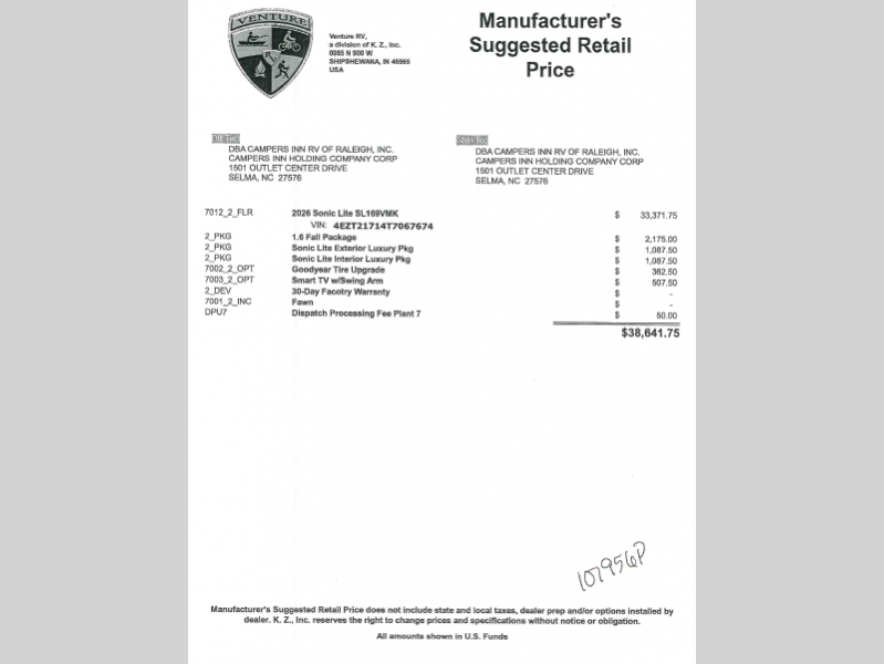 Used 2026 Venture RV Sonic Lite 169VMK Travel Trailer